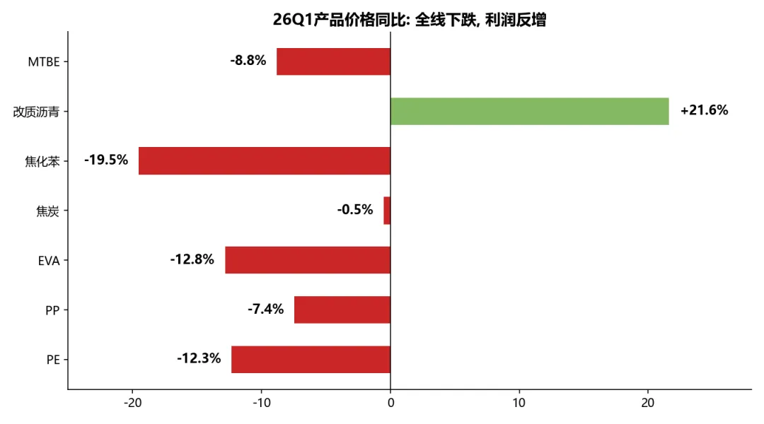 PE出厂价6159元/吨, 同比跌了12.3%; PP出厂价6037元/吨, 跌了7.4%; EVA更狠, 跌了12.8%。除了改质沥青逆势涨了21.6%, 基本上一片绿。
