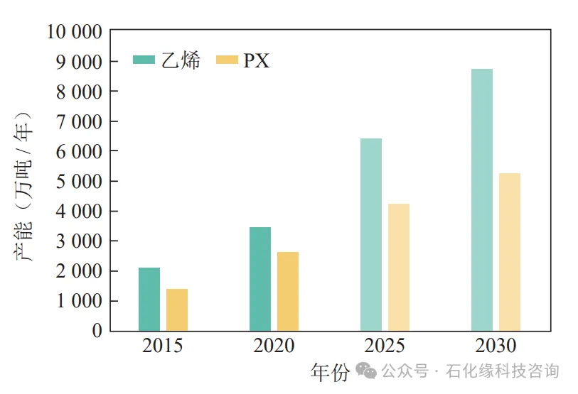 成本方面,在新能源汽车替代加速背景下,全球石油需求增长面临较大压力,或对国际原油价格形成一定制约,进而传导至石化产品价格端。总体而言,“十五五”期间我国石化行业仍将处于供需再平衡的阵痛期,市场竞争核心将从以往的“规模扩张”转向更为深入的“成本竞争”与技术创新驱动的“高端化突破”。国内乙烯、PX产能变化详见图3。