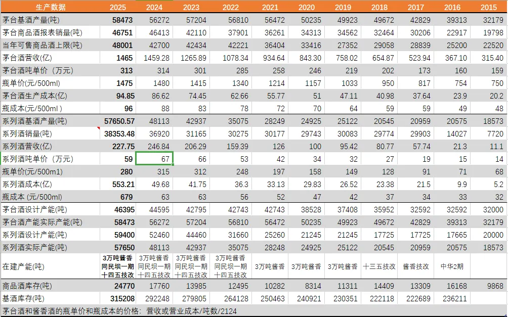 产量: 2025年茅台酒产量为58,473.16吨,同比增长3.91%。 销量: 2025年销售量为46,750.66吨,同比增长0.73%。 库存: 期末库存量(含半成品及基础酒)为315,207.51吨,同比增加9.67%,为未来的可持续发展积累了充足基酒。