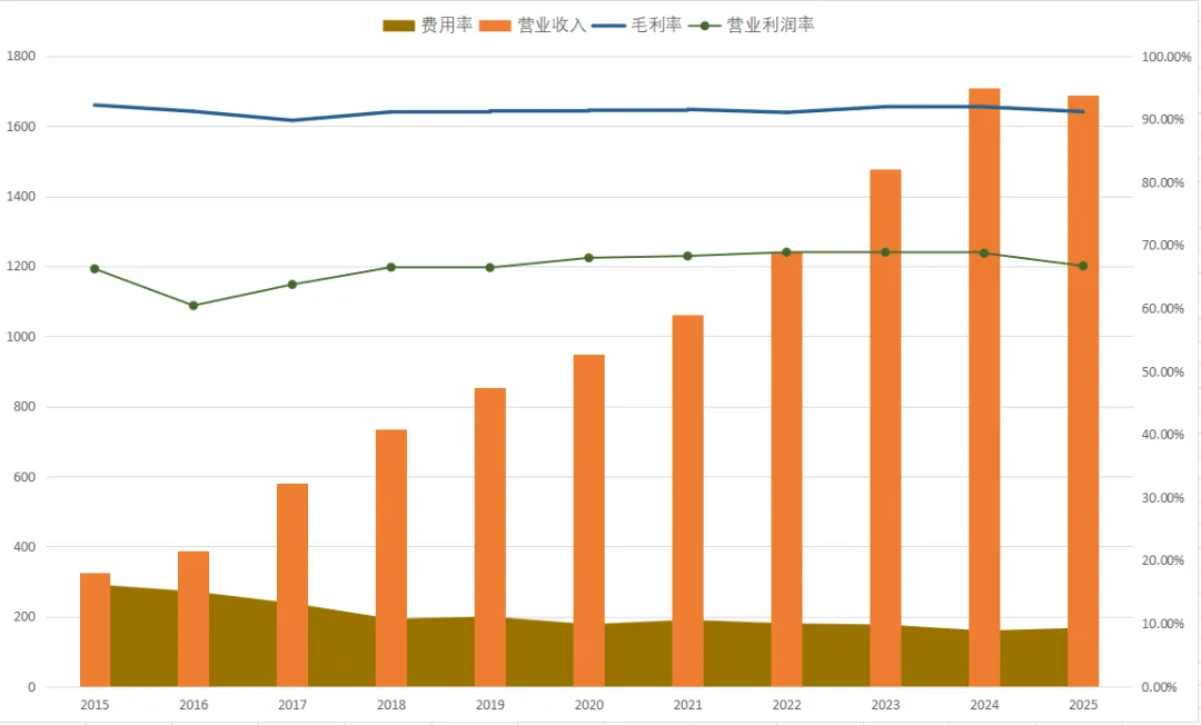 虽然核心产品茅台酒的收入在2025年仍保持了0.39%的微增,但其他系列酒的收入出现了明显下降。