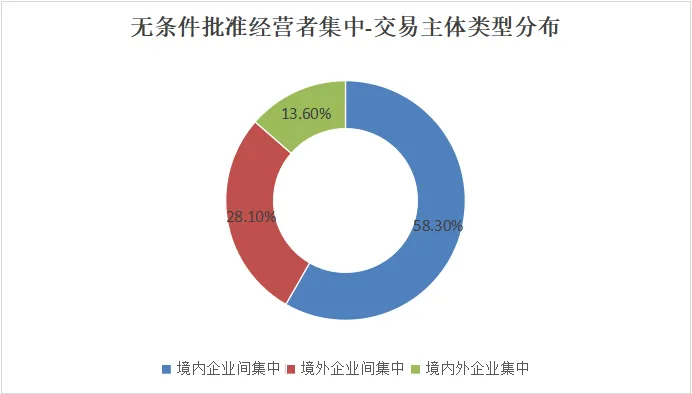 涉及纵向集中的案件数量为24件,占比约35.8%。涉及上下游关系的集中,主要担忧“客户封锁”或“原料封锁”,但通常可通过行为性条件(如FRAND供应、不歧视)解决,因此附条件批准中纵向集中相对较少。