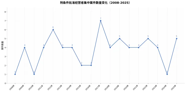 图3 附条件批准与禁止经营者集中案件年度分布(2008-2025)