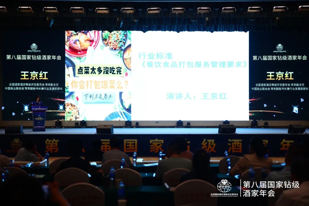 本届年会主题是“标准引领、数字赋能、品牌创新”,开幕式和主论坛由中国商业联合会常务副秘书长、全国酒家酒店等级评定委员会常务副主任王京红主持,共有来自全国部分省市商务主管部门的负责人以及各地酒家酒店等级评定委员会、餐饮行业协会负责人等近800多名代表参加会议。