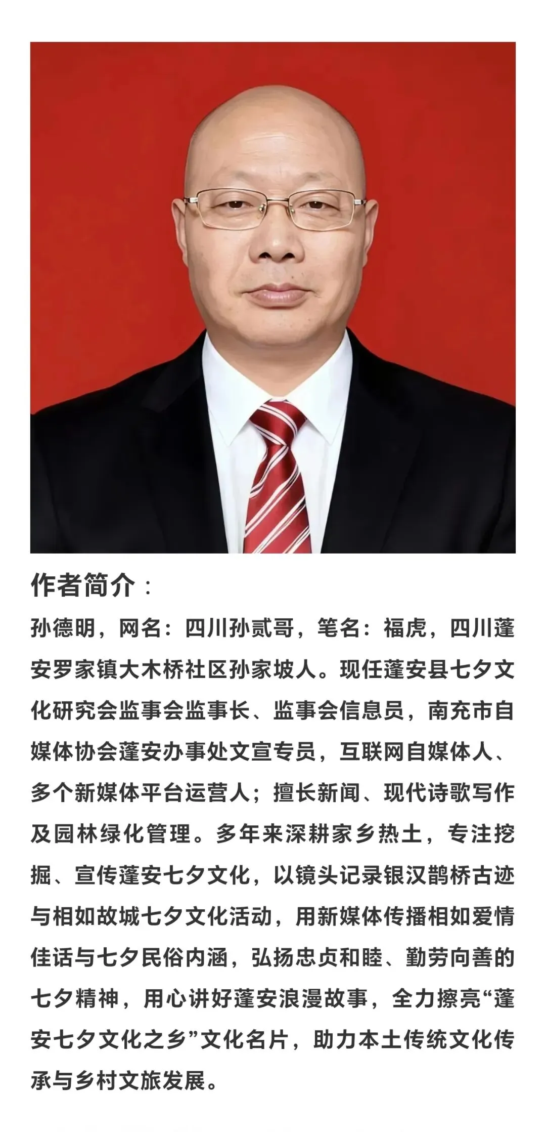 2. 深度研究与系统传承:研究会监事长孙德明(笔名孙贰哥/福虎)承担了七夕文化的史料挖掘、非遗建档与文化融合工作,系统梳理银汉镇石刻、汉代民俗遗存,完成《蓬安七夕节》非遗项目系统性建档,并率先提出七夕文化与相如文化融合的发展理念,开展了一系列实践探索。