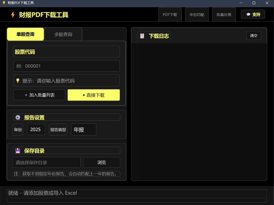 财报PDF下载工具 v1.0 是一款专业的财务报告PDF下载工具,基于PyQt6开发,采用ClickHouse深色主题界面设计。该工具从巨潮资讯网(cninfo.com.cn)自动下载上市公司财报PDF文件,支持年报、一季报、半年报、三季报等多种报告类型。