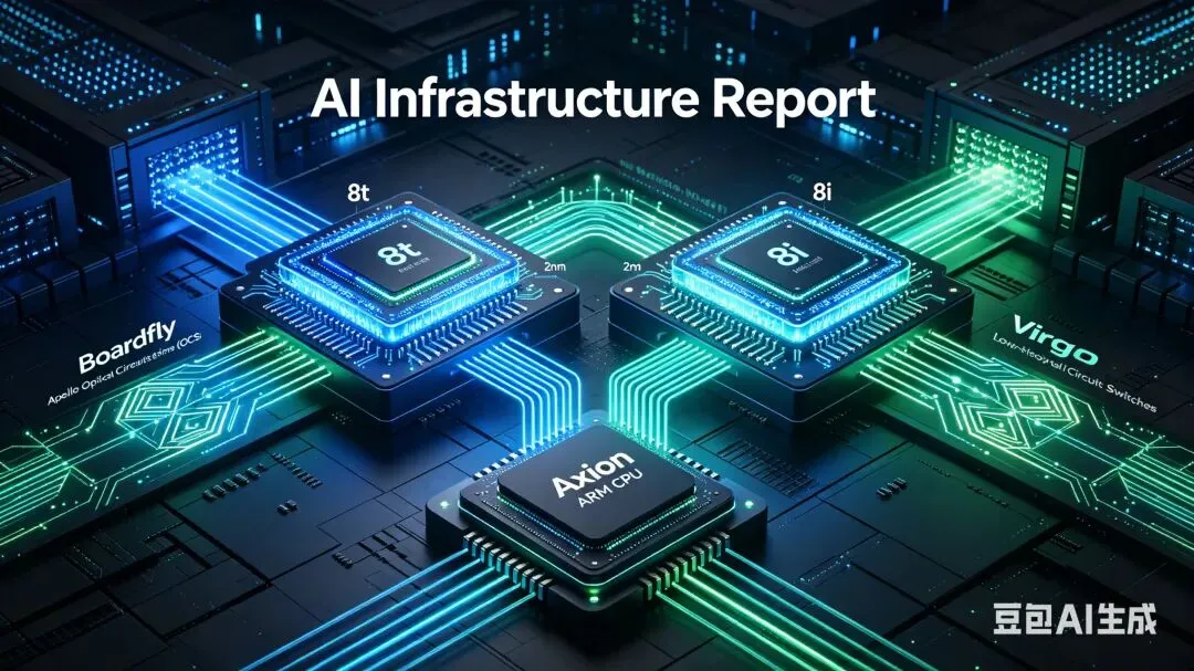 针对2026年后预训练与推理负载的深度解耦,谷歌推出了第八代TPU,并首次在架构上将训练(TPU 8t)与推理(TPU 8i)进行彻底分离。