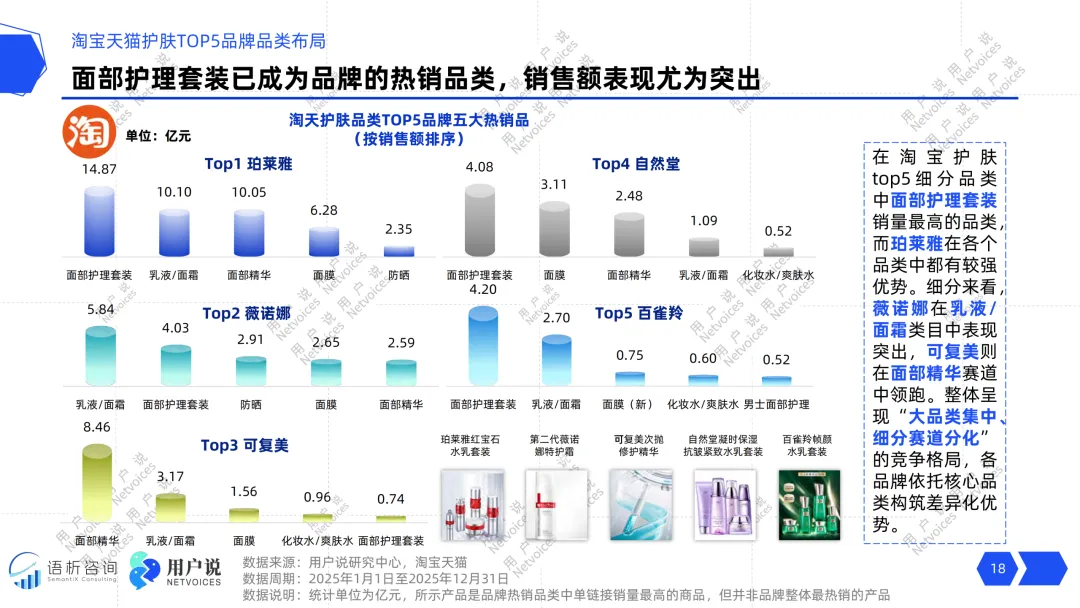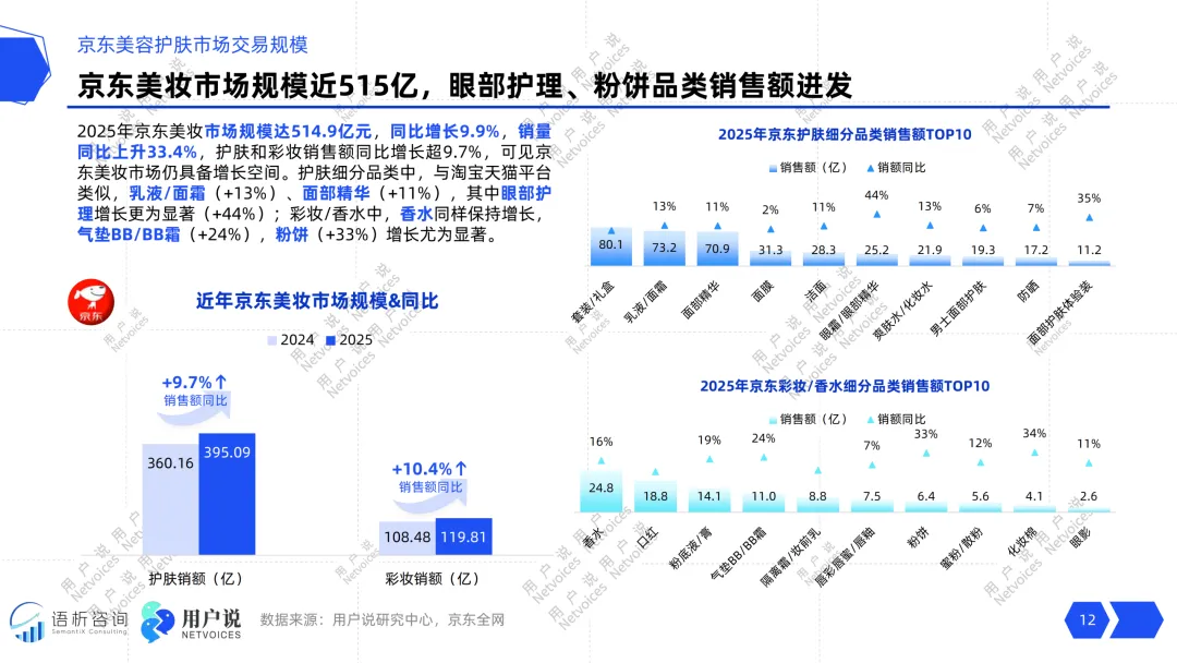 市场层面头部国货根基稳固,珀莱雅、毛戈平稳居行业标杆,新锐品牌也在细分赛道不断突围破圈。各大电商平台发展差异明显,淘天平台珀莱雅销量领跑,京东渠道可复美增速亮眼,抖音平台韩束稳居类目榜首,本土品牌在全线上平台都牢牢占据消费主导地位。