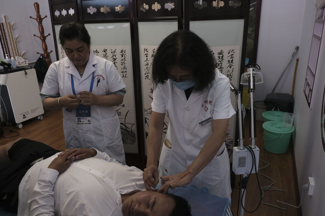 8月23日,陇西县“丝绸之路”中国甘肃中医药产业园内热闹非凡,甘肃中医药大学附属医院专家团队在园区内开展义诊活动,受到了众多宾客的关注和参与。