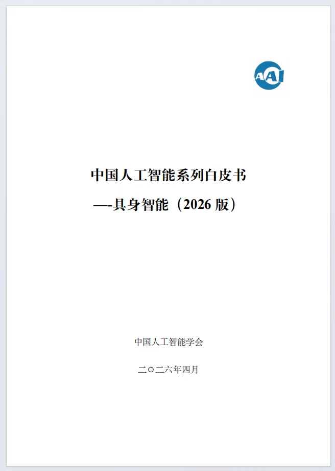 《中国人工智能系列白皮书-具身智能(2026版)》由中国人工智能学会编制,系统阐述2026版具身智能技术与产业全景。报告界定具身智能为具备物理实体、通过感知-决策-执行闭环与现实交互的智能系统,梳理其发展历程与多学科交叉特性,解析虚实结合技术路径。