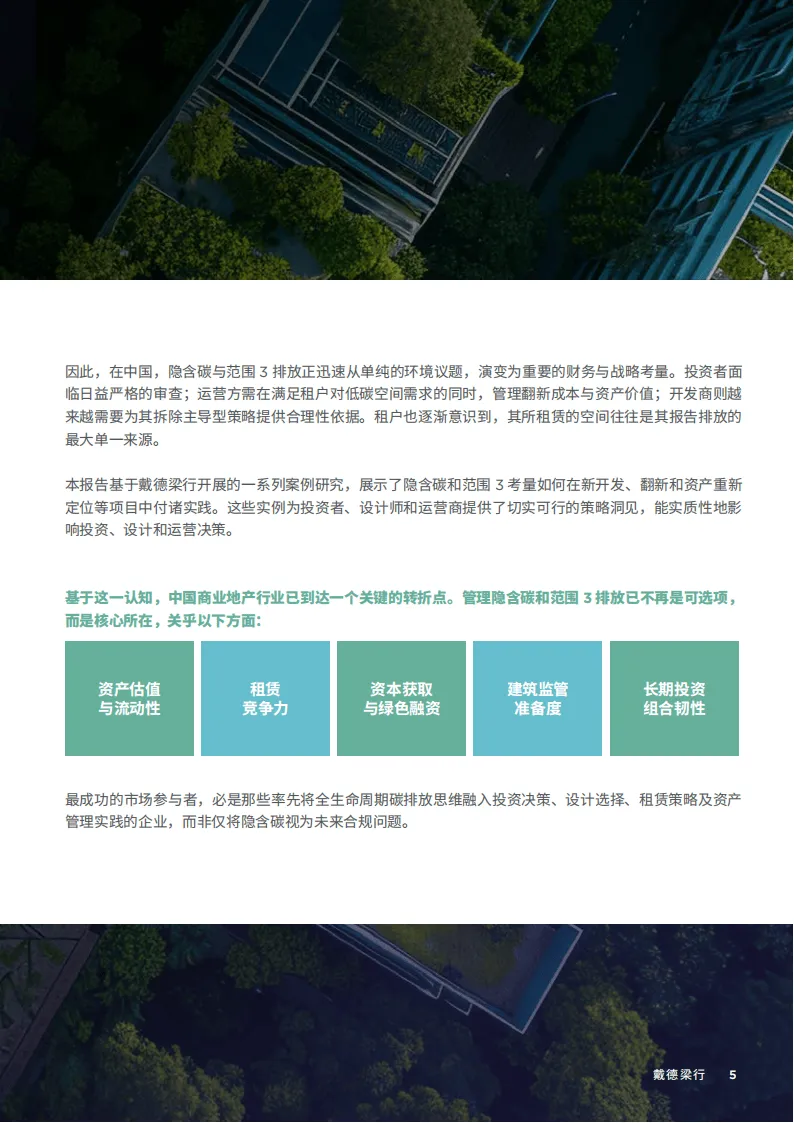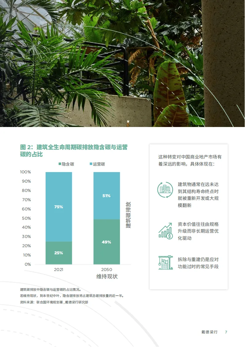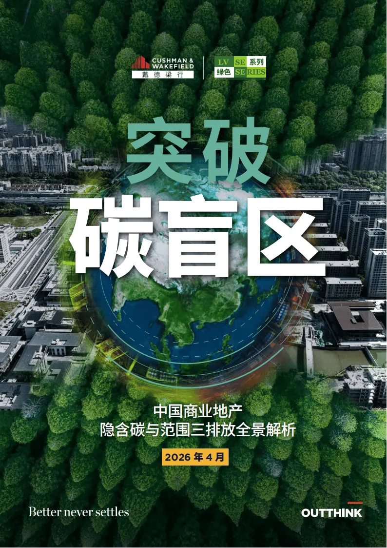 戴德梁行2026年4月发布的这份报告指出,中国商业地产碳减排已进入关键转折期,仅聚焦运营碳的传统模式存在明显局限,隐含碳与范围3排放正成为建筑全生命周期碳足迹的核心组成,成为行业必须直面的核心议题。