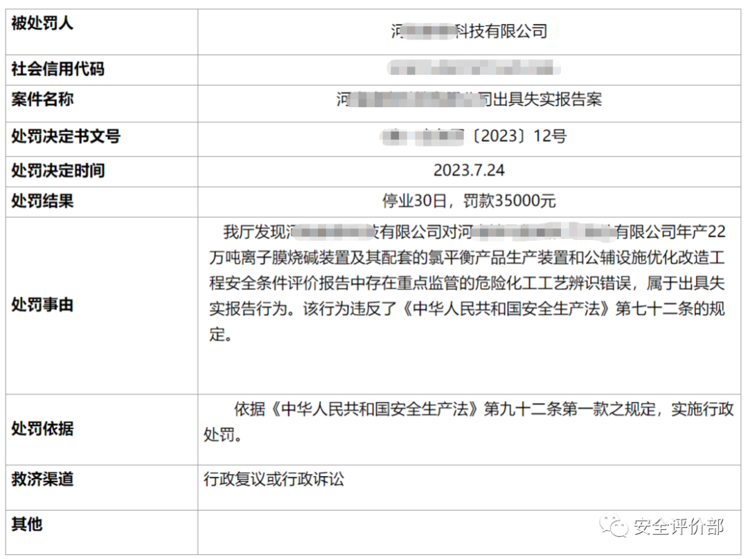 近日,某安全评价机构因重点监管的危险化工工艺辨识错误,被停业30日、罚款35000元,具体如下。