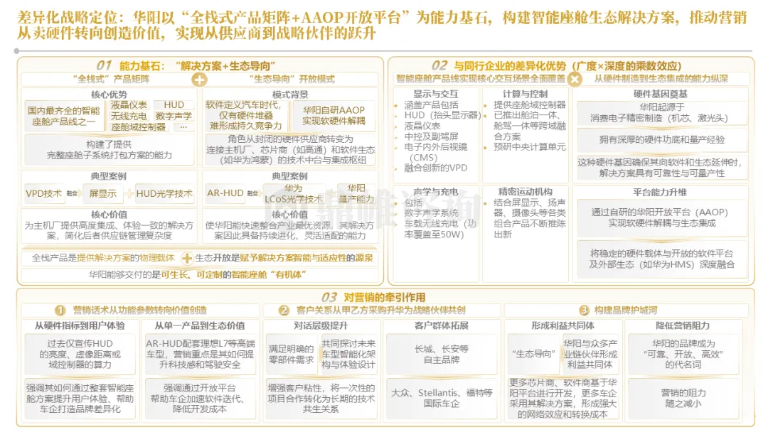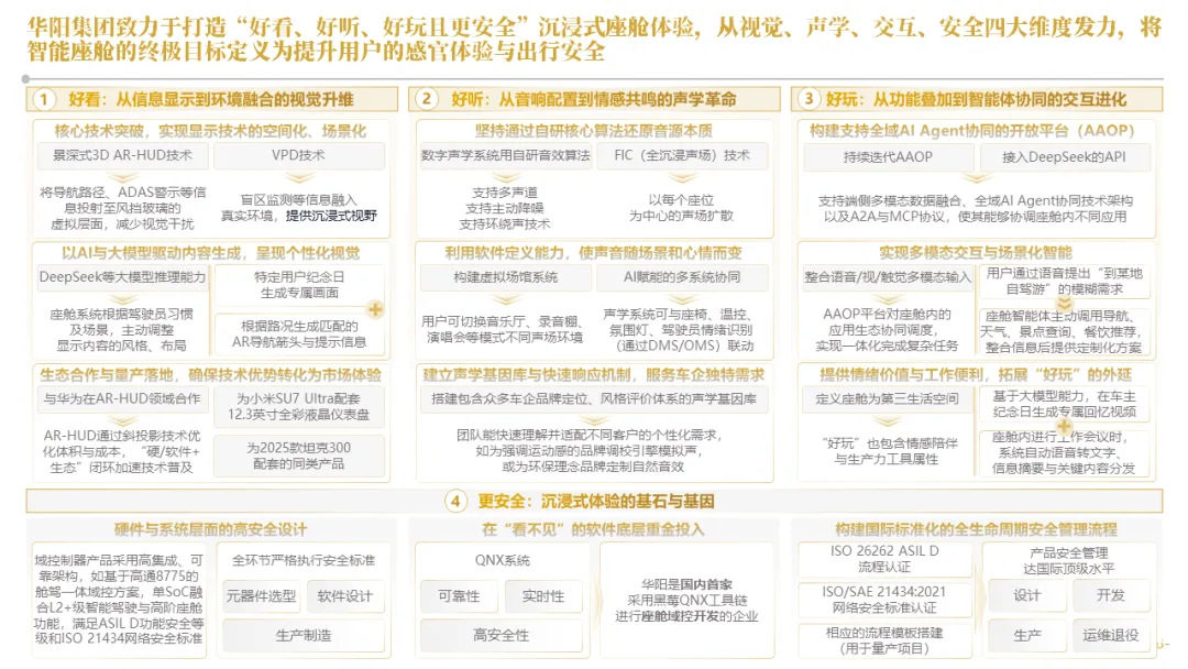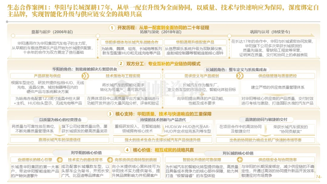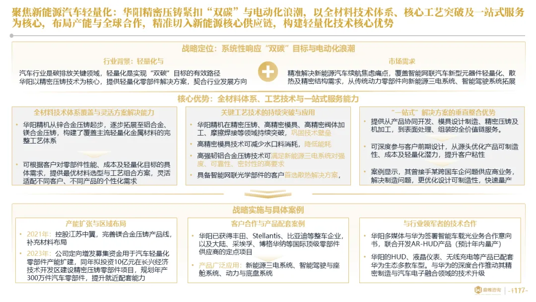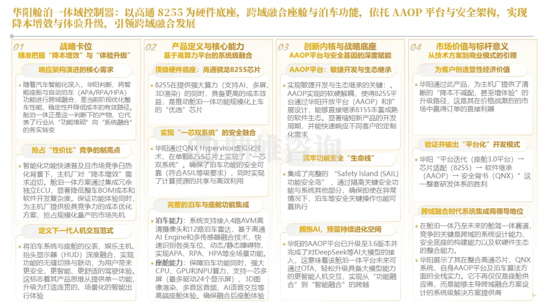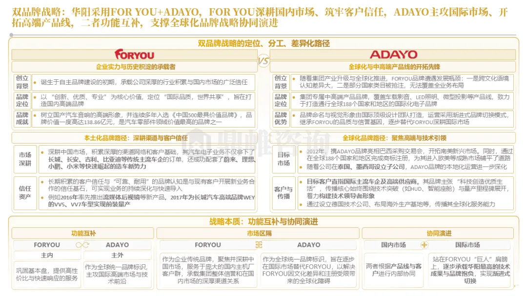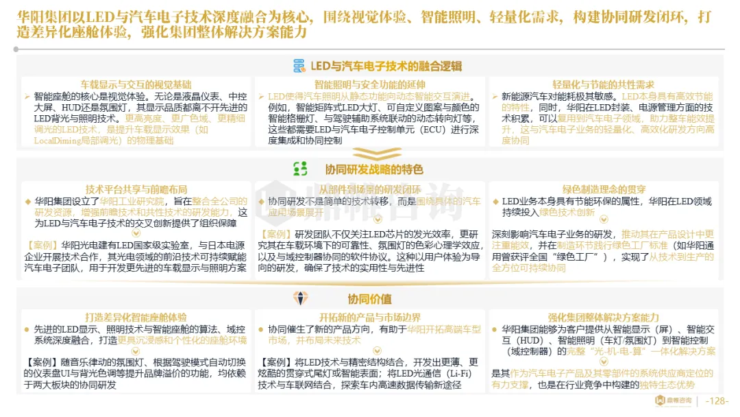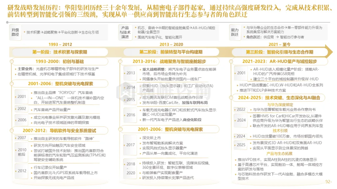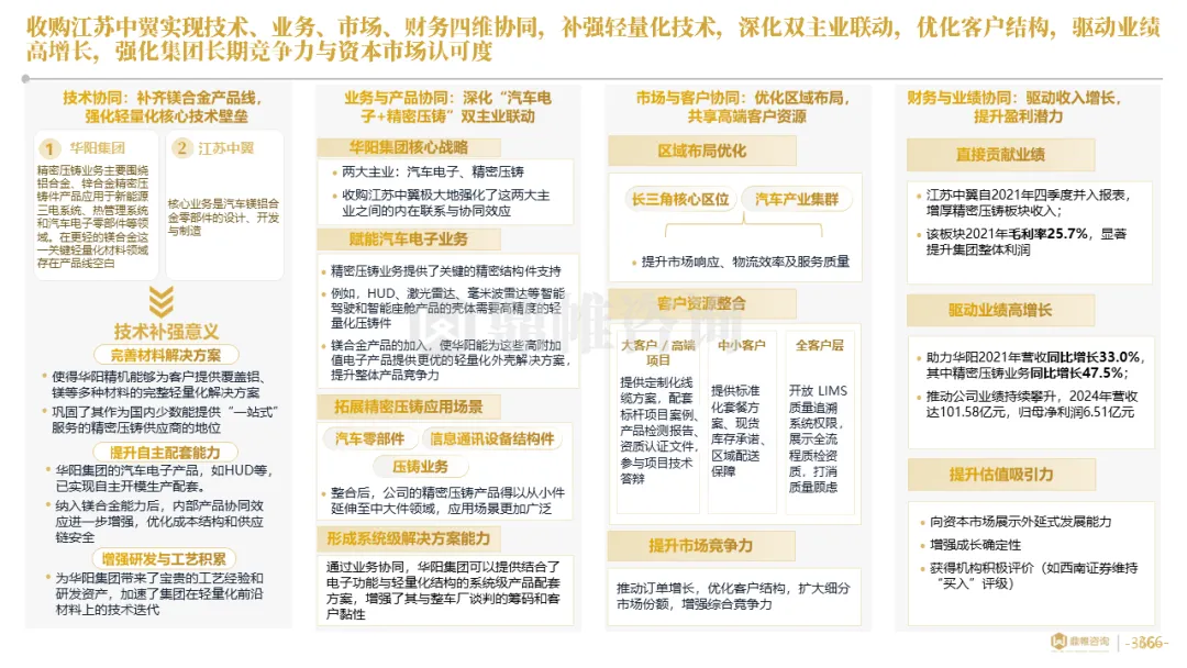 针对明确的能力短板,华阳发起精准的战略并购(如收购江苏中翼),快速获取核心技术与高端客户资源。同时,通过参股、合资等方式前瞻性布局智能驾驶等前沿领域,以轻资产模式卡位未来产业链关键环节,构建生态协同