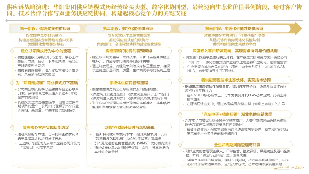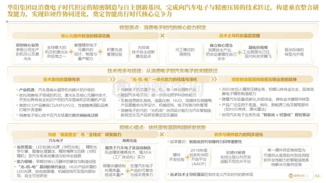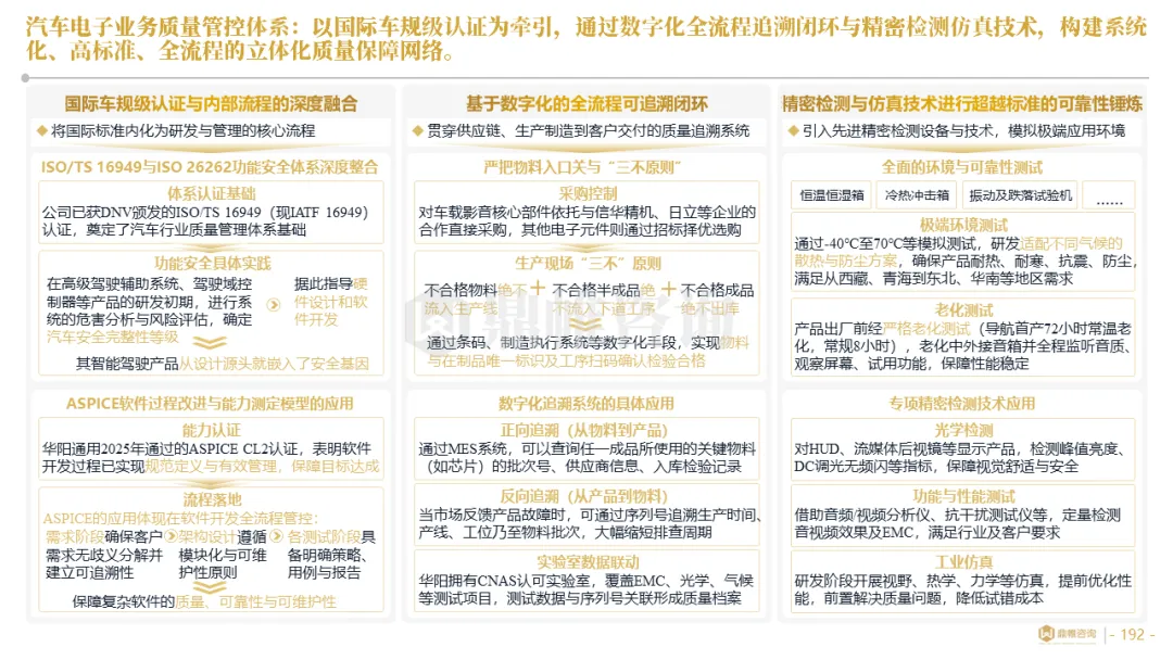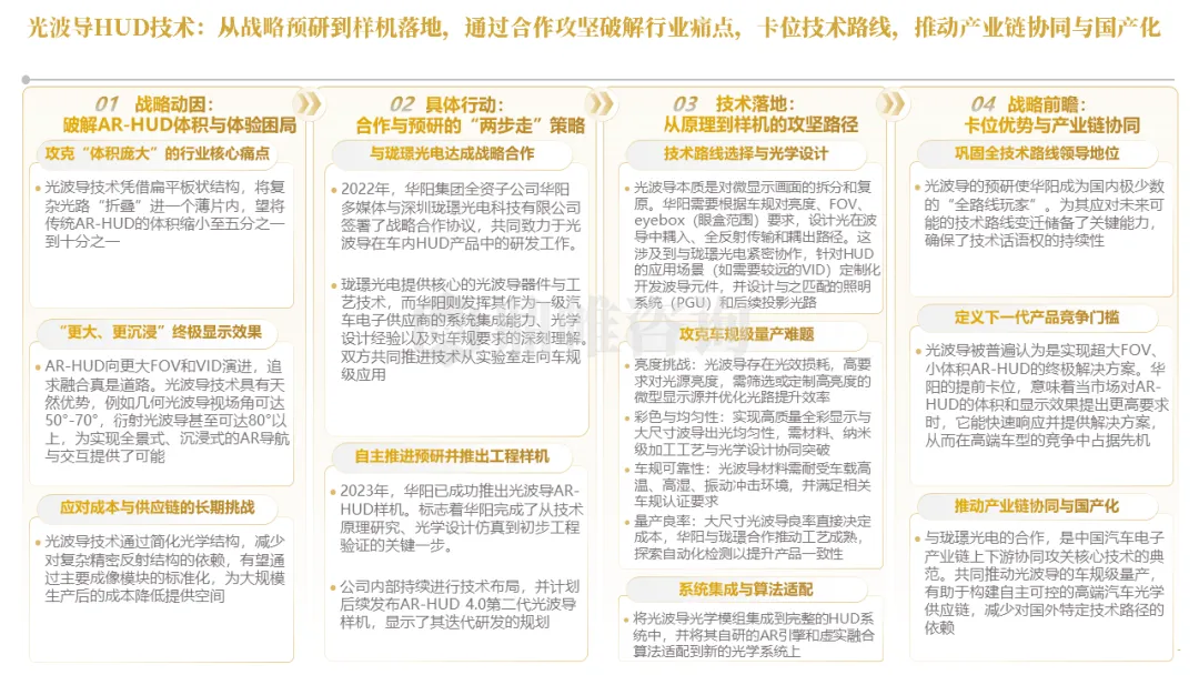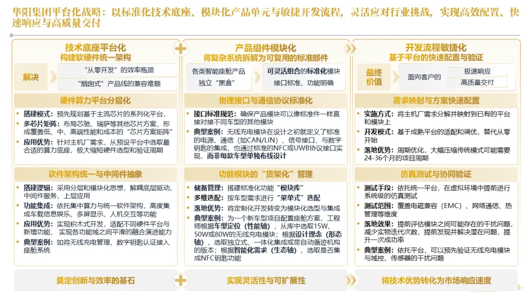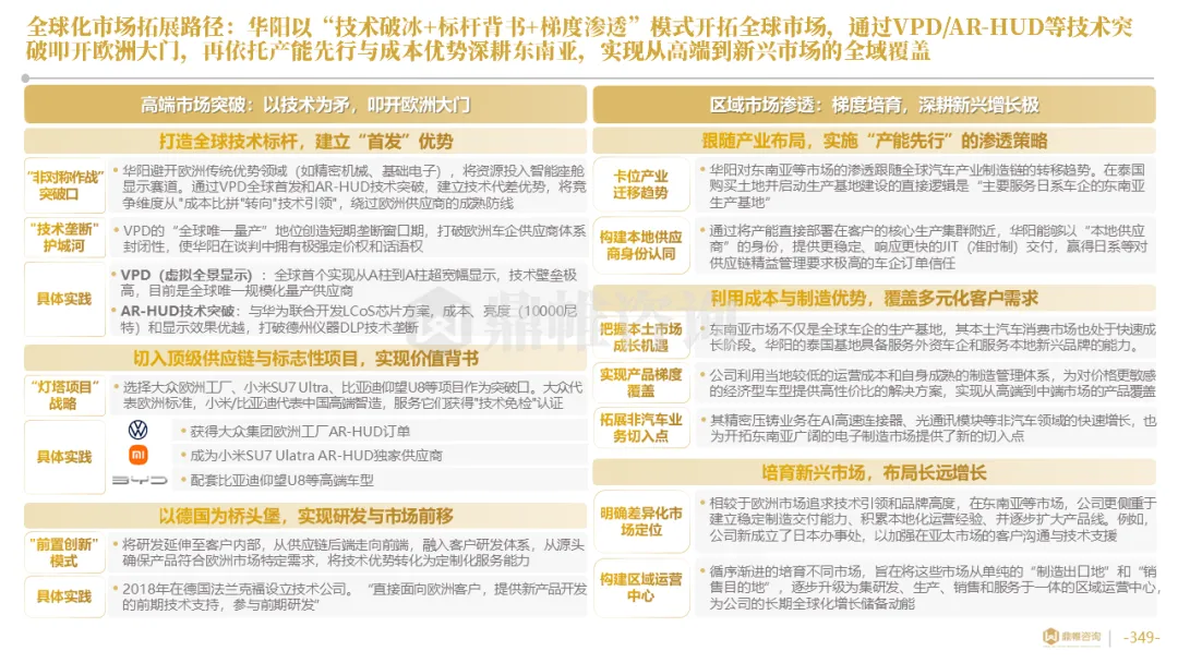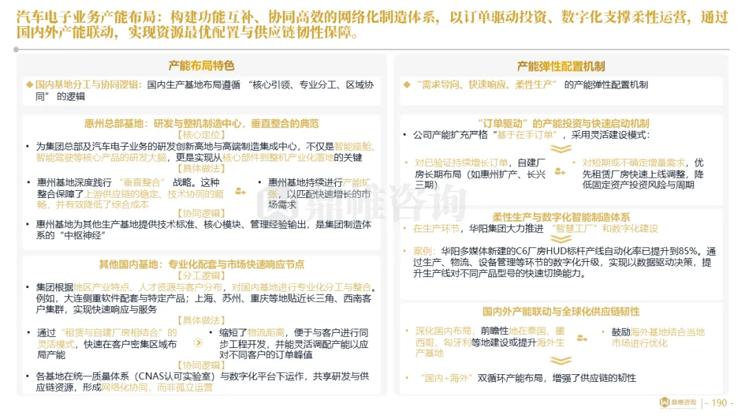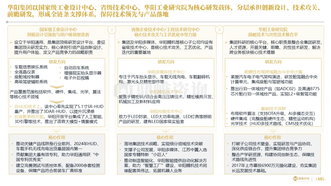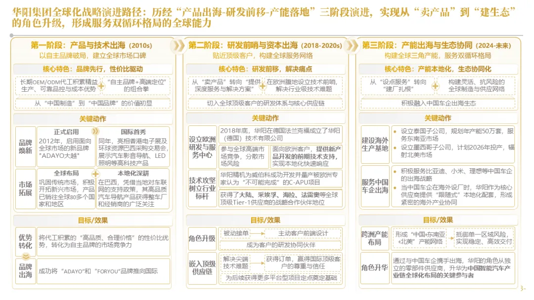 针对明确的能力短板,华阳发起精准的战略并购(如收购江苏中翼),快速获取核心技术与高端客户资源。同时,通过参股、合资等方式前瞻性布局智能驾驶等前沿领域,以轻资产模式卡位未来产业链关键环节,构建生态协同