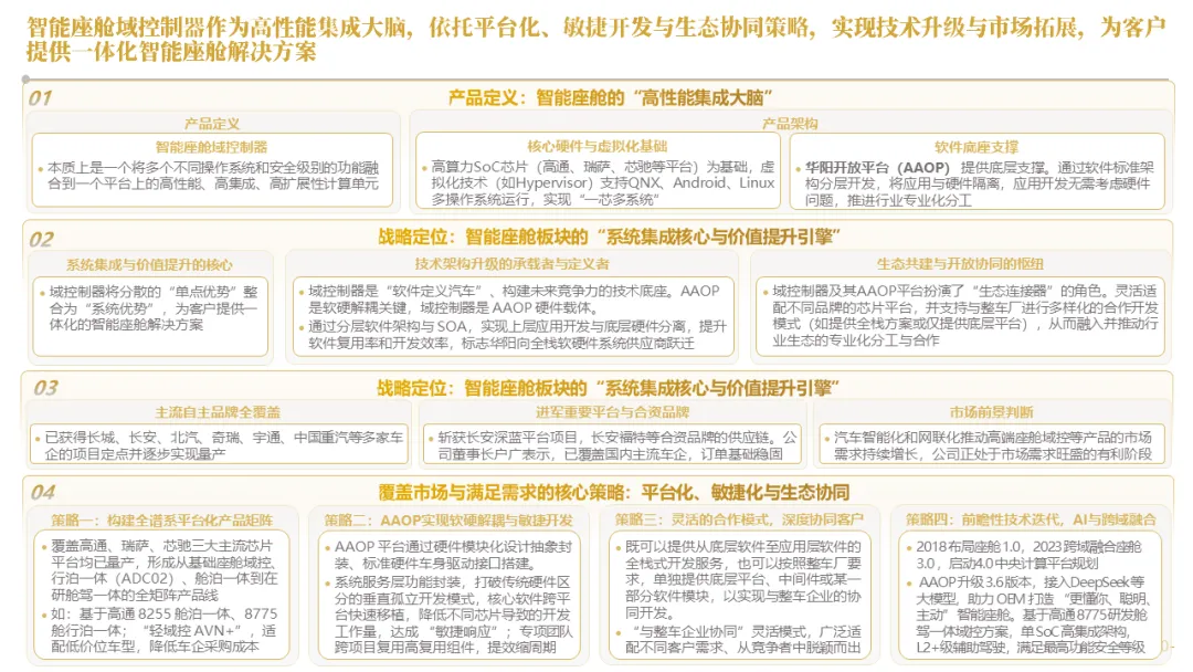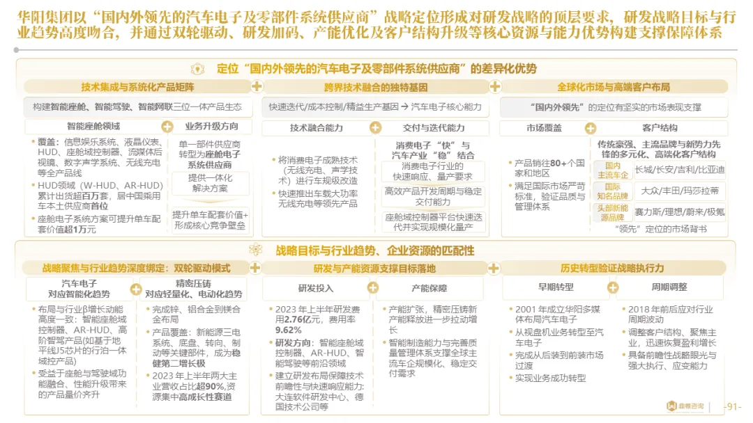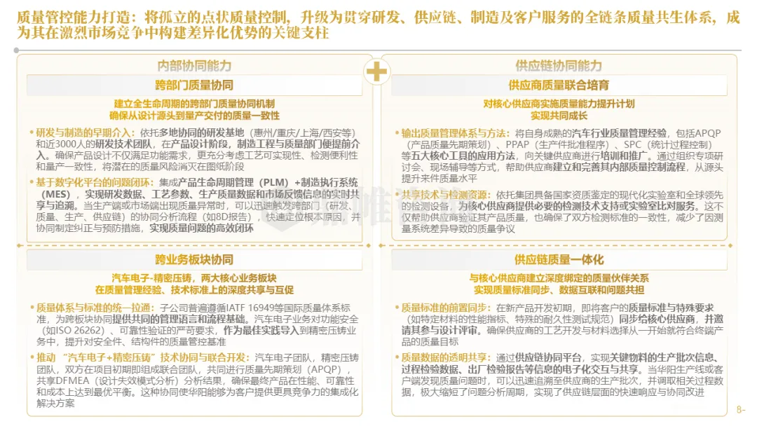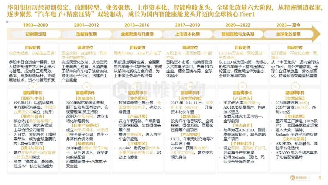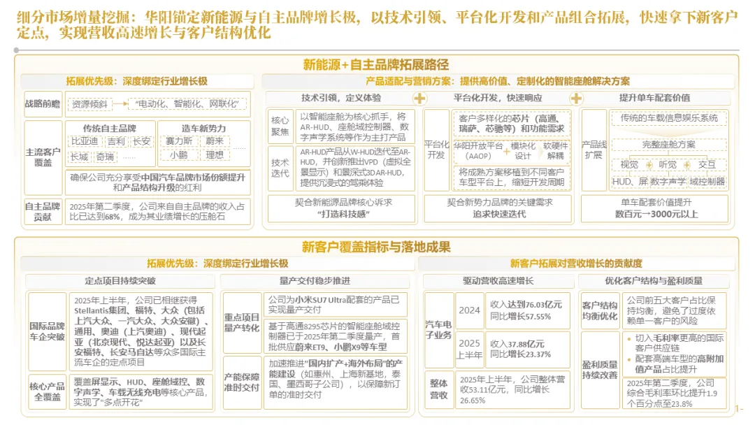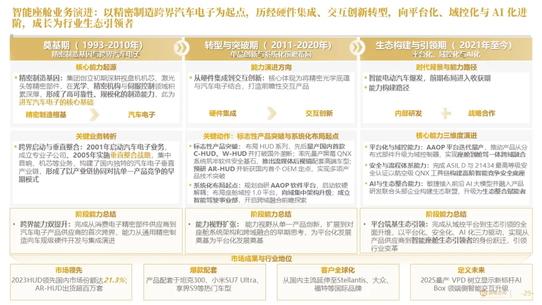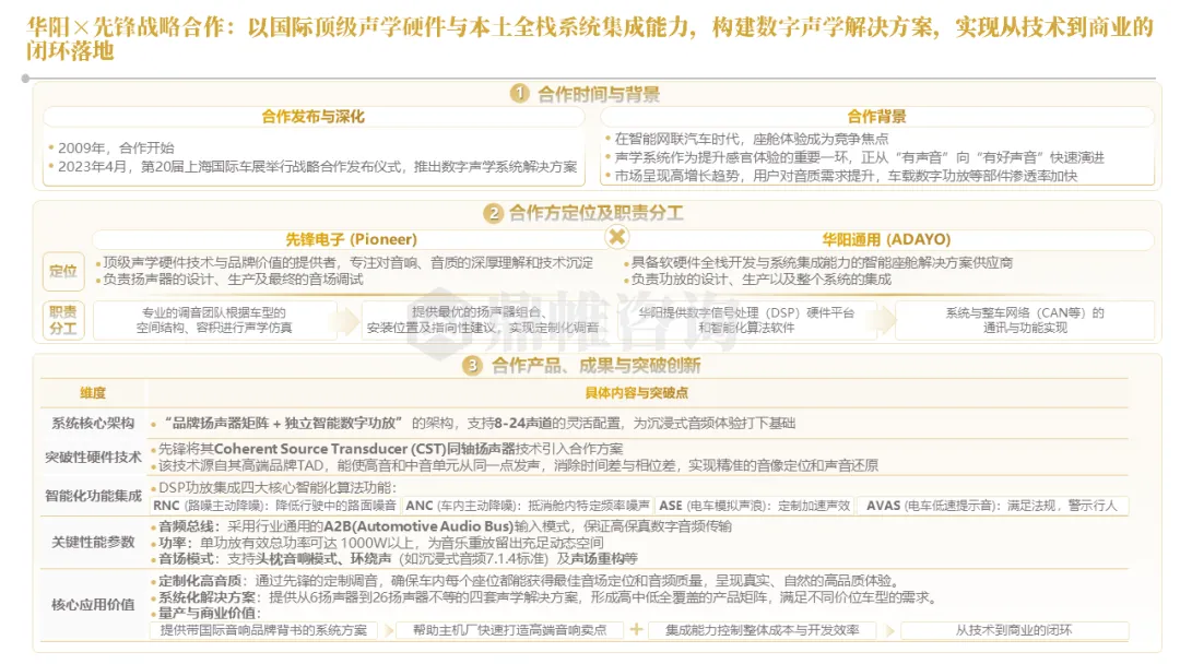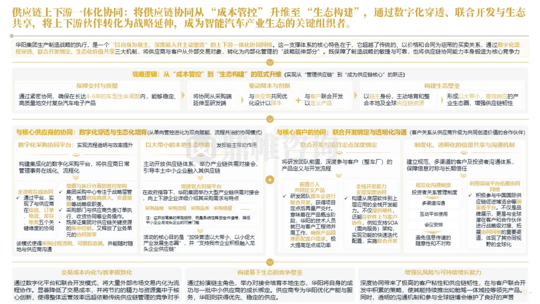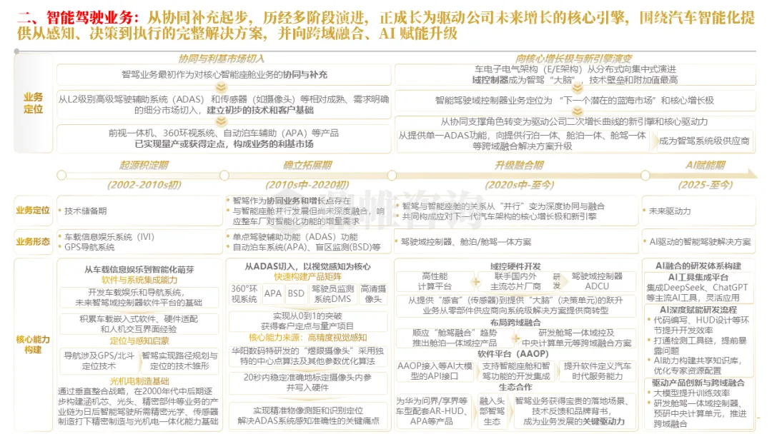 针对明确的能力短板,华阳发起精准的战略并购(如收购江苏中翼),快速获取核心技术与高端客户资源。同时,通过参股、合资等方式前瞻性布局智能驾驶等前沿领域,以轻资产模式卡位未来产业链关键环节,构建生态协同