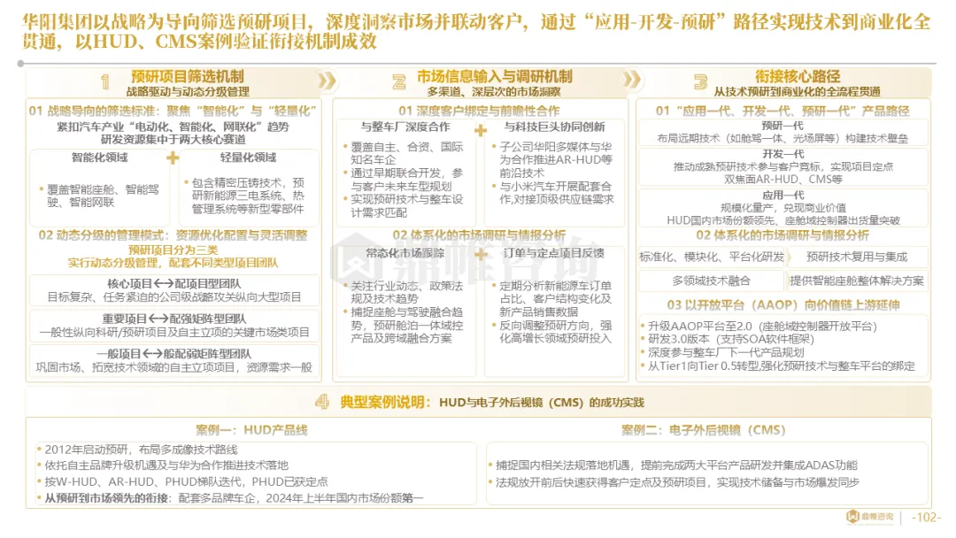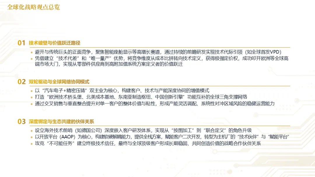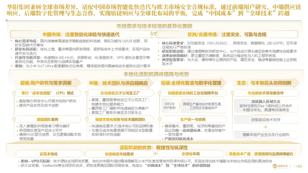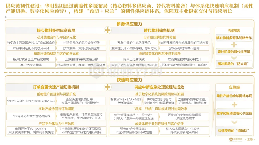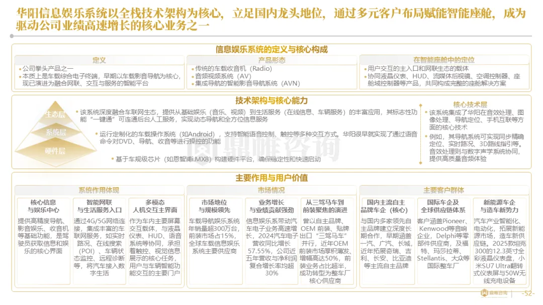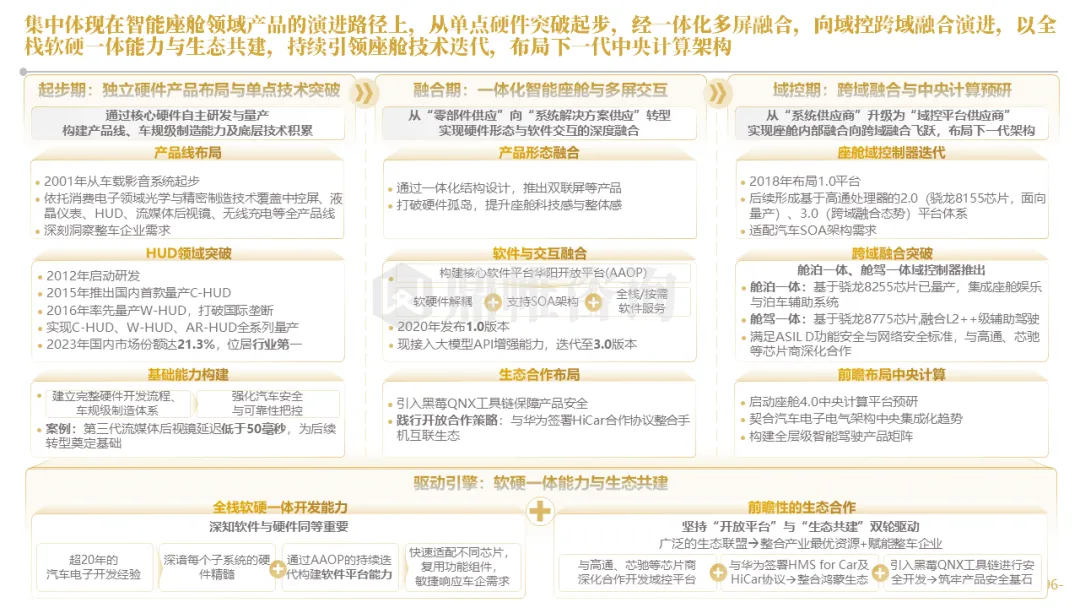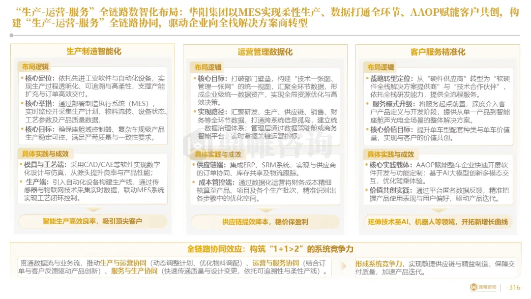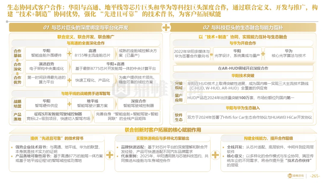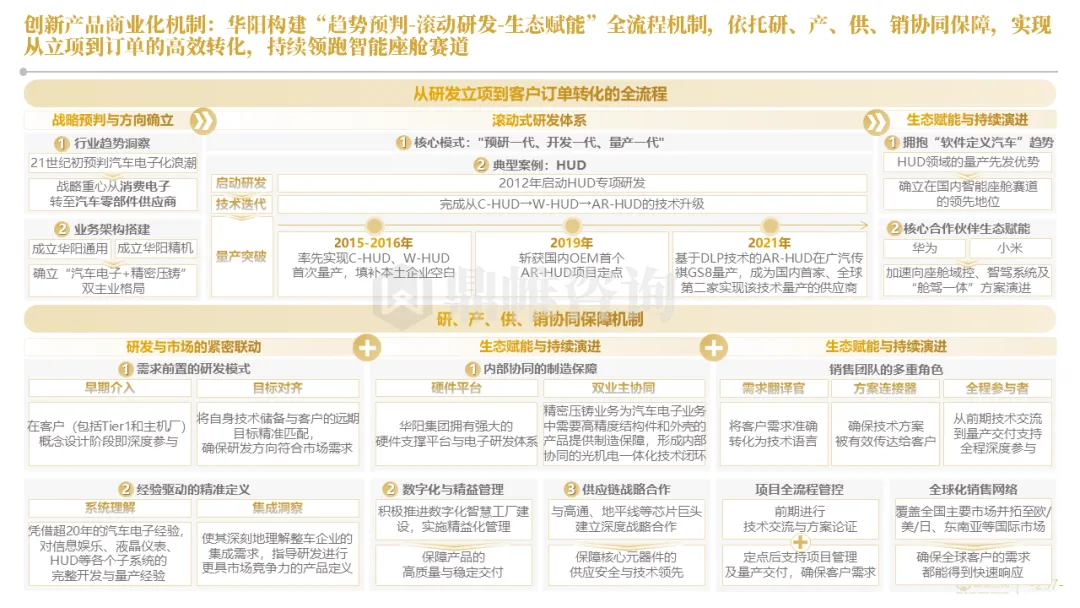 针对明确的能力短板,华阳发起精准的战略并购(如收购江苏中翼),快速获取核心技术与高端客户资源。同时,通过参股、合资等方式前瞻性布局智能驾驶等前沿领域,以轻资产模式卡位未来产业链关键环节,构建生态协同