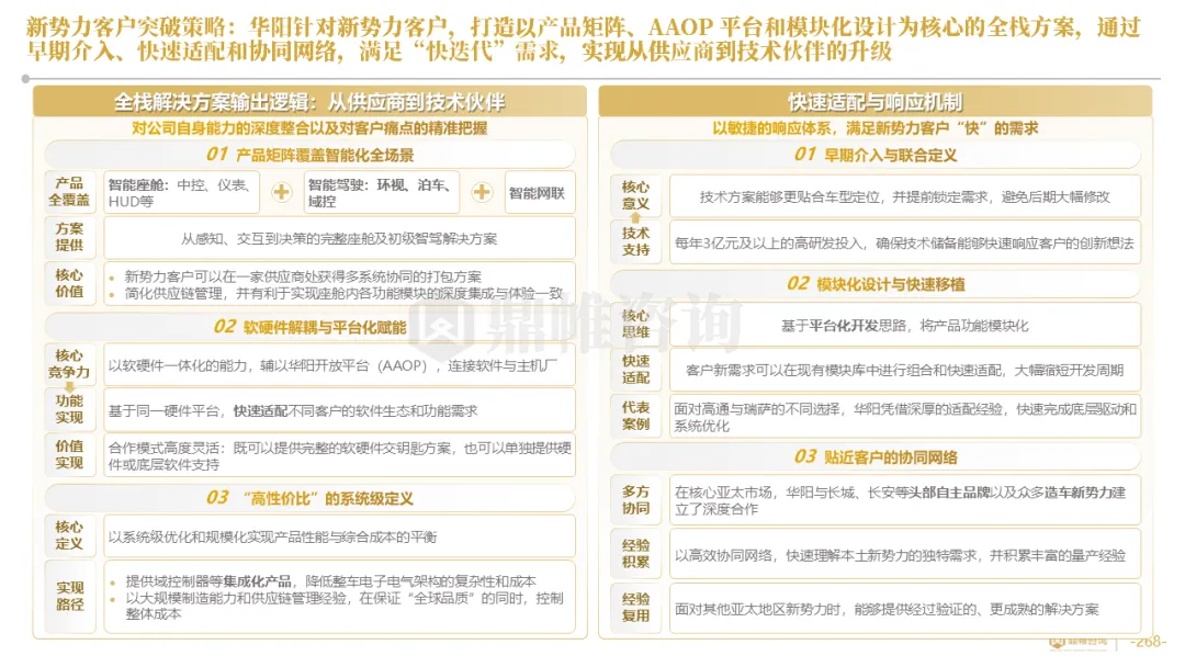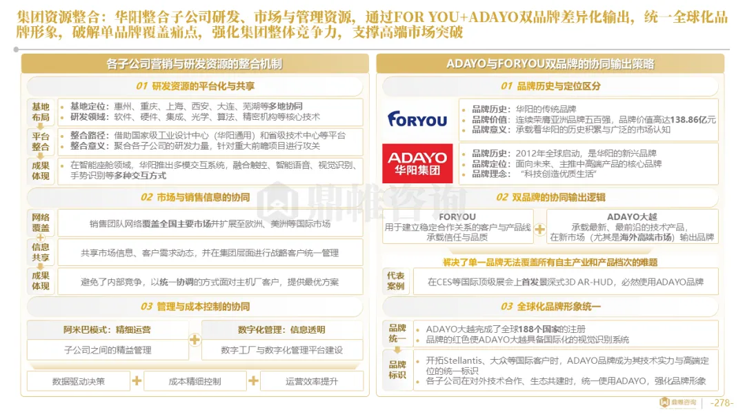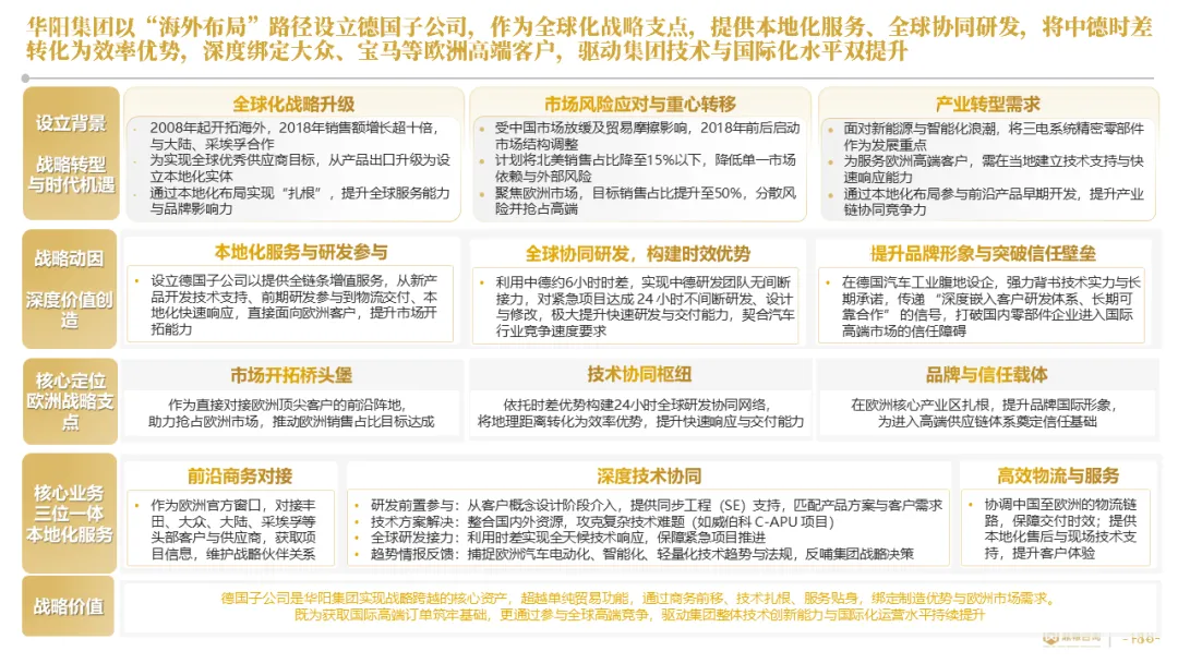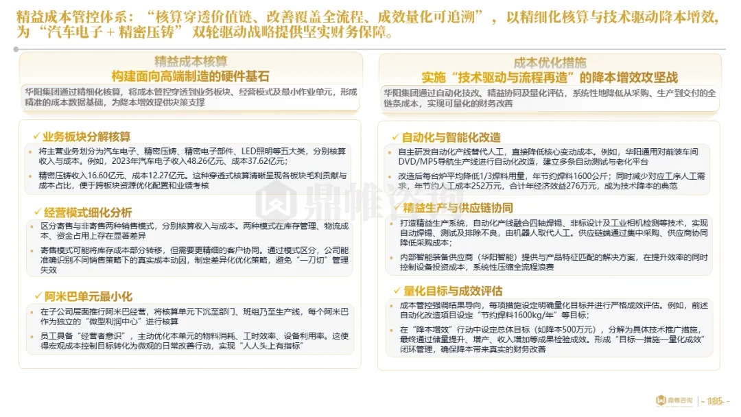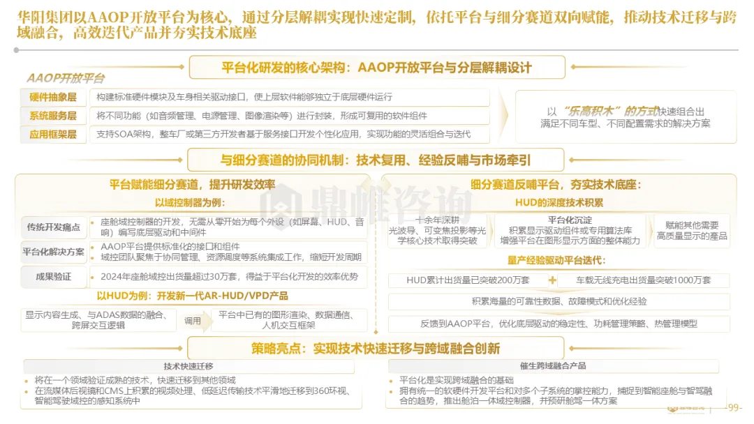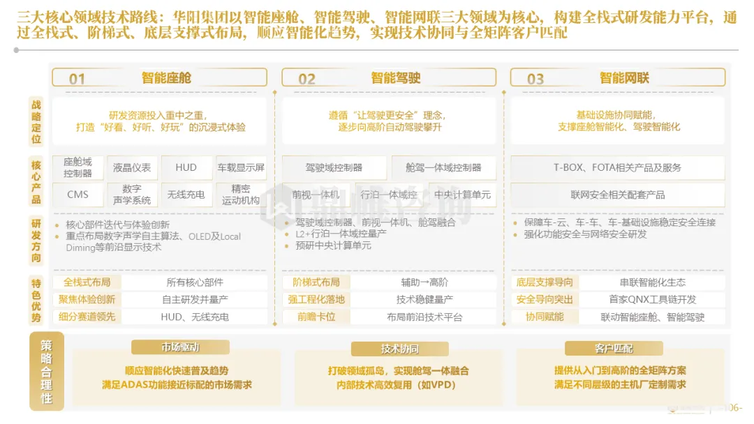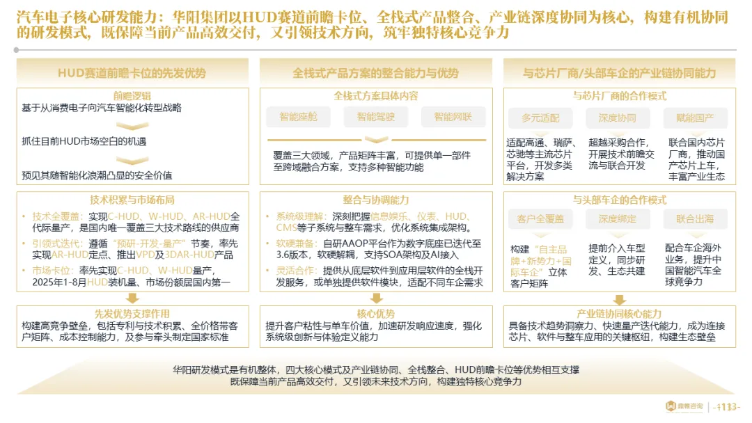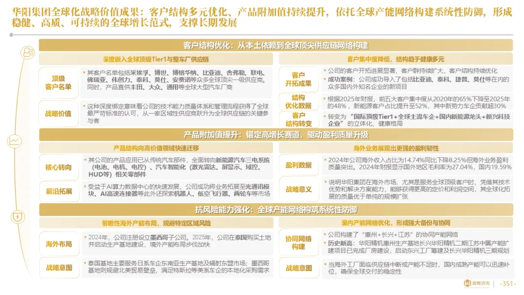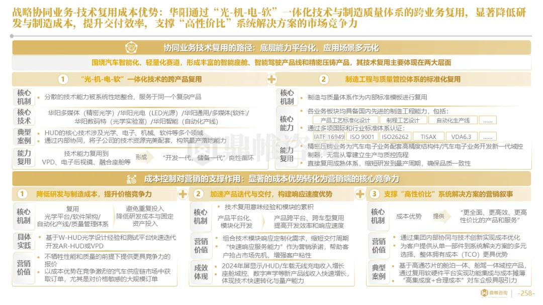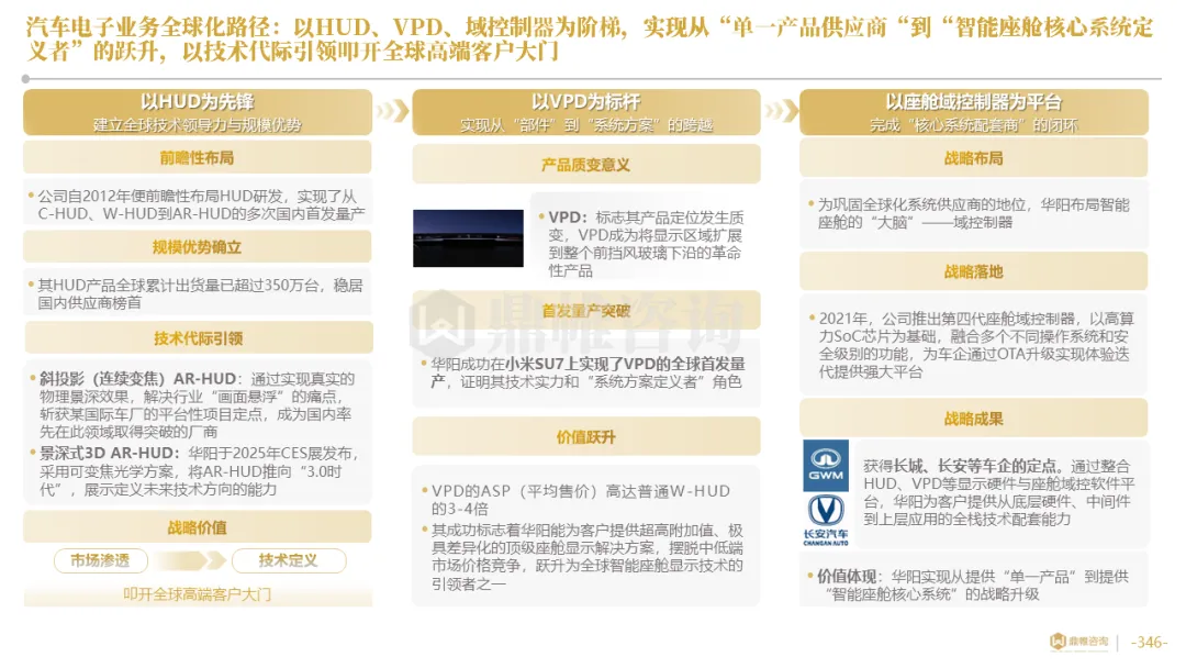 针对明确的能力短板,华阳发起精准的战略并购(如收购江苏中翼),快速获取核心技术与高端客户资源。同时,通过参股、合资等方式前瞻性布局智能驾驶等前沿领域,以轻资产模式卡位未来产业链关键环节,构建生态协同