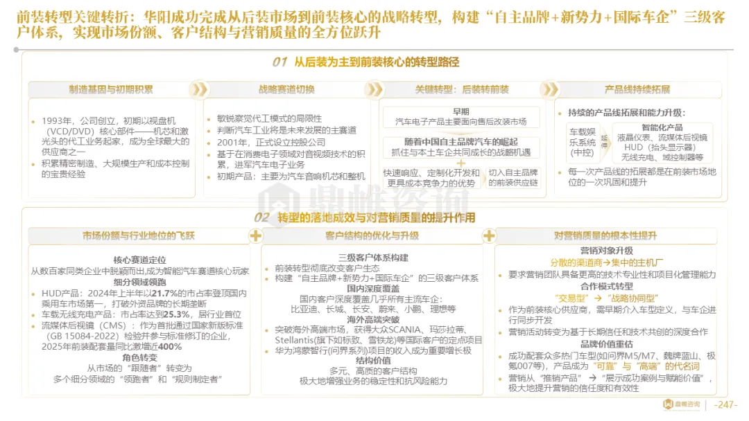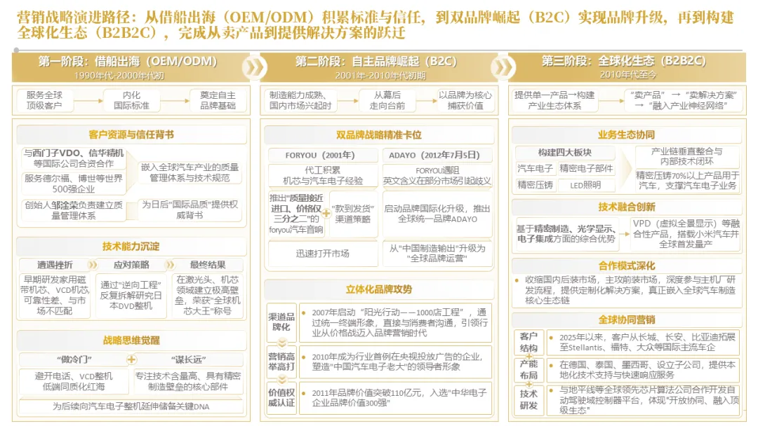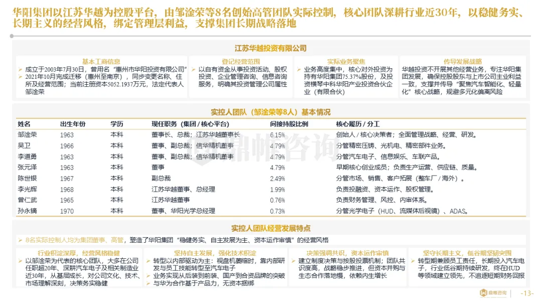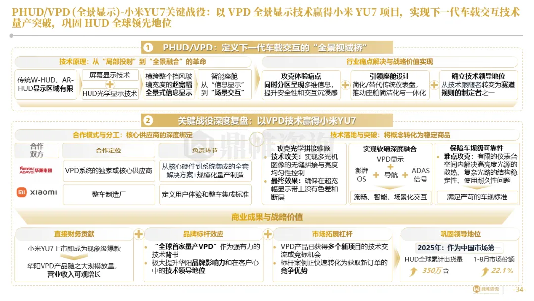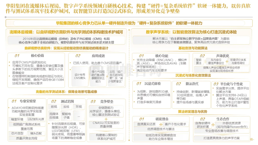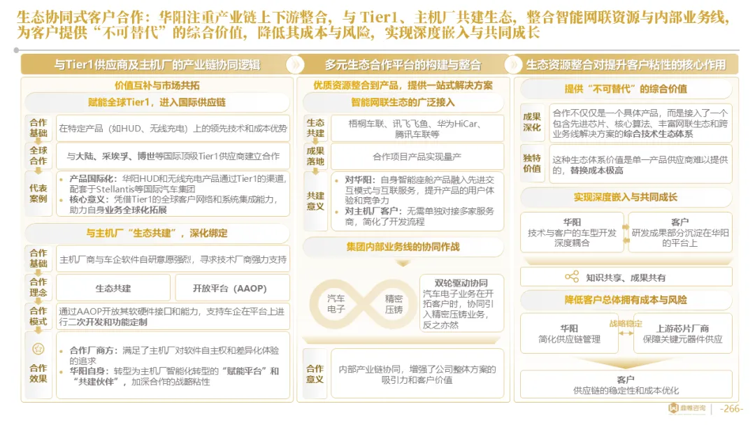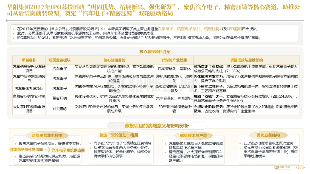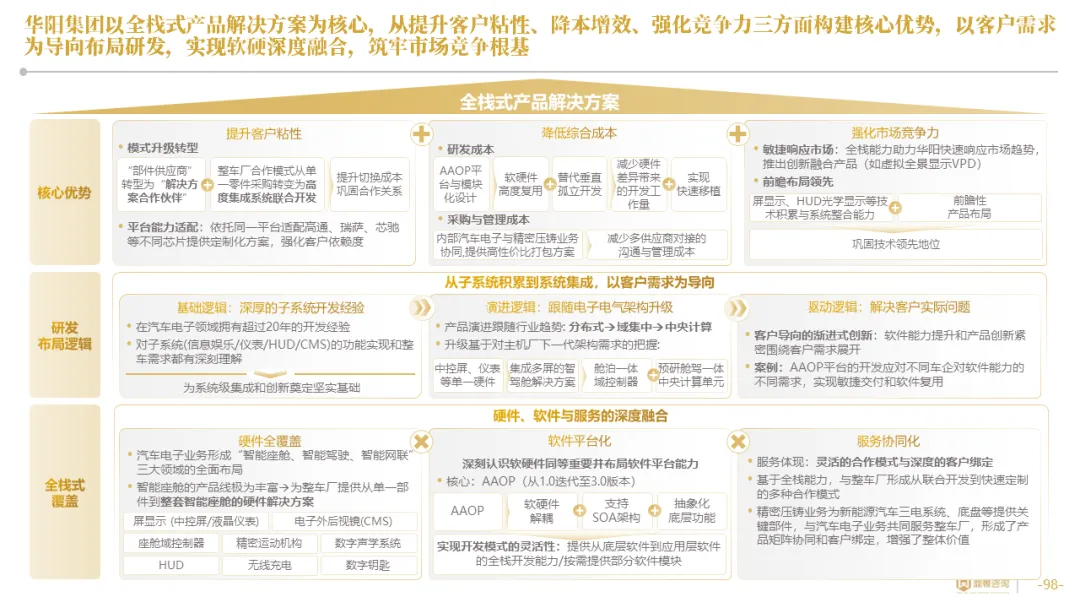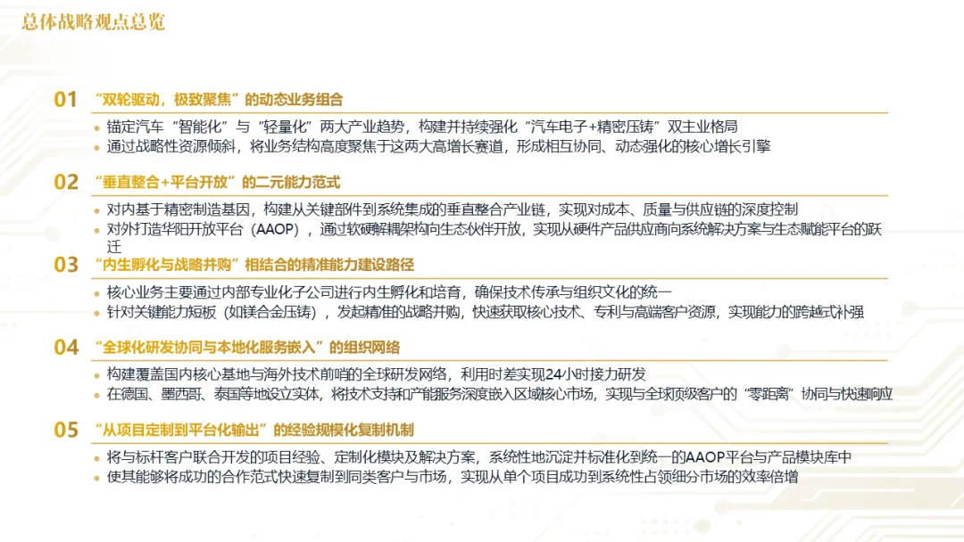 针对明确的能力短板,华阳发起精准的战略并购(如收购江苏中翼),快速获取核心技术与高端客户资源。同时,通过参股、合资等方式前瞻性布局智能驾驶等前沿领域,以轻资产模式卡位未来产业链关键环节,构建生态协同