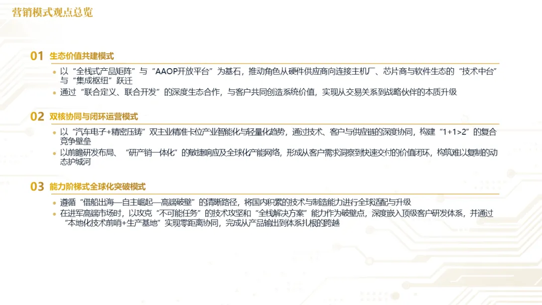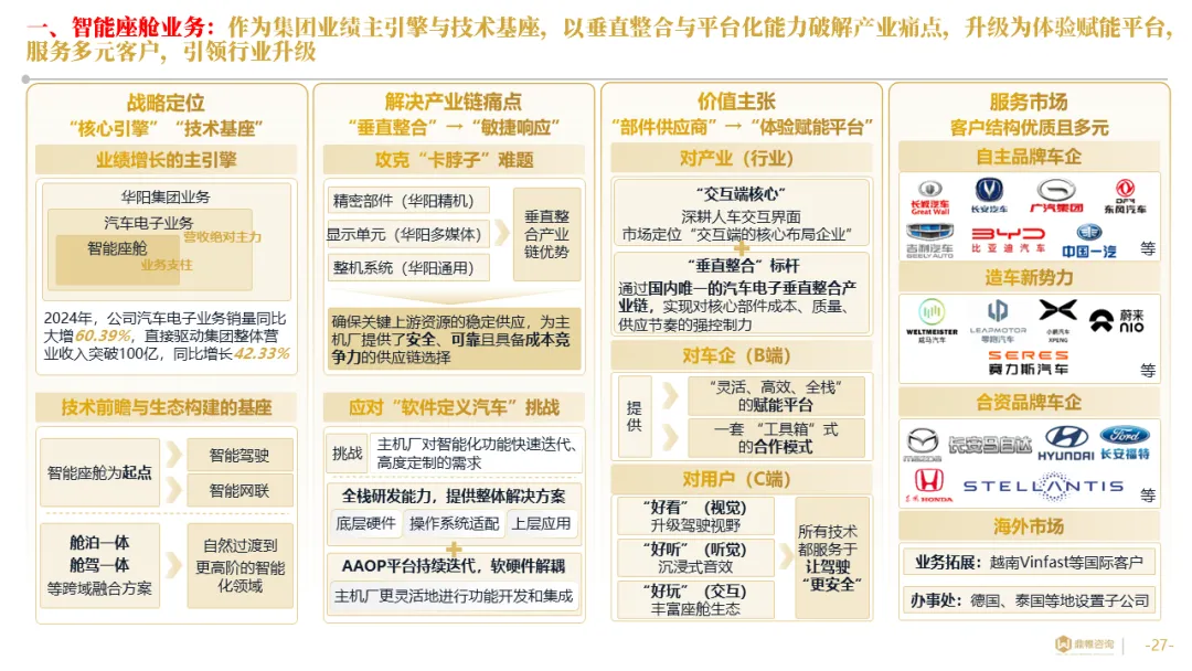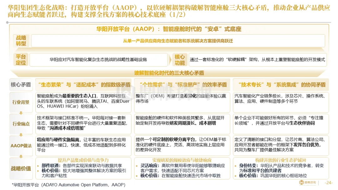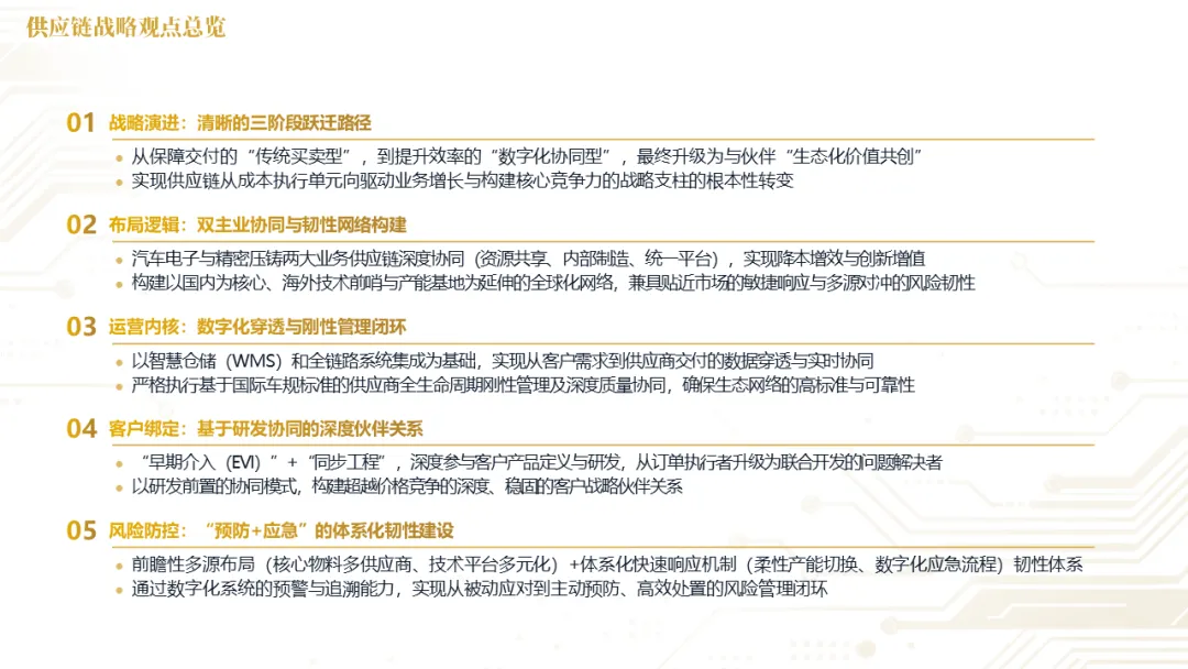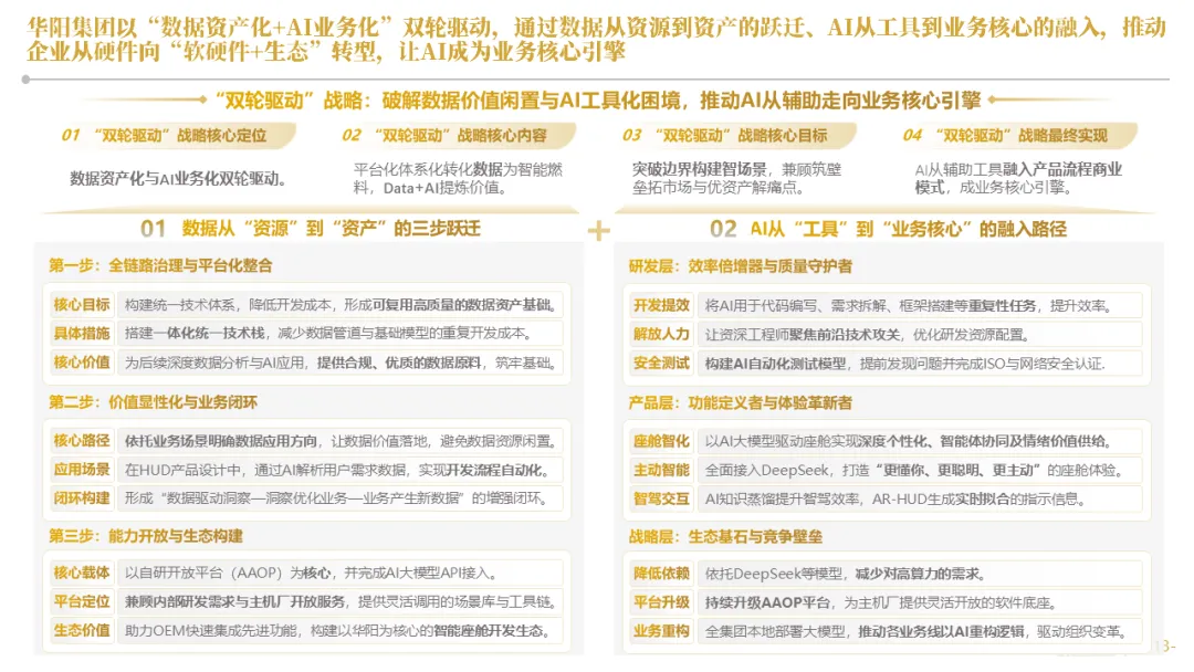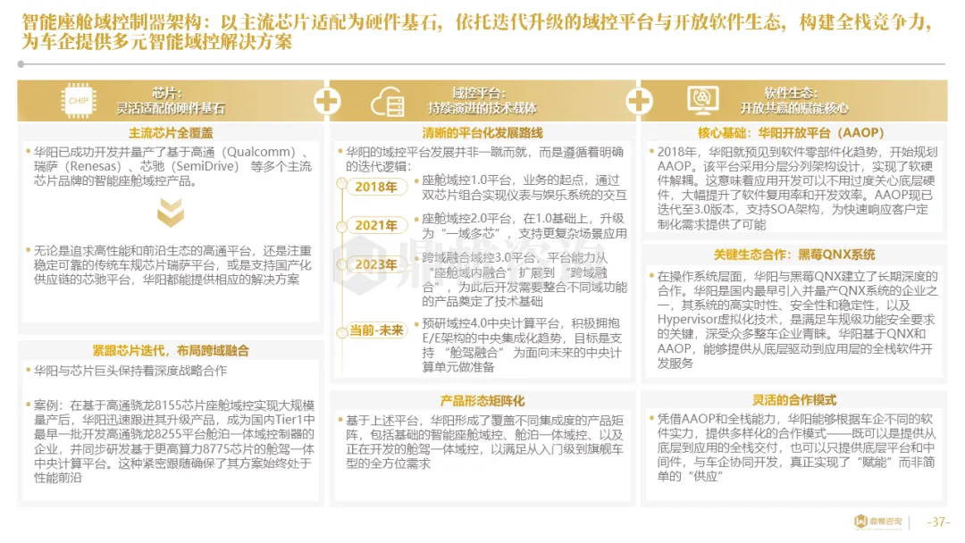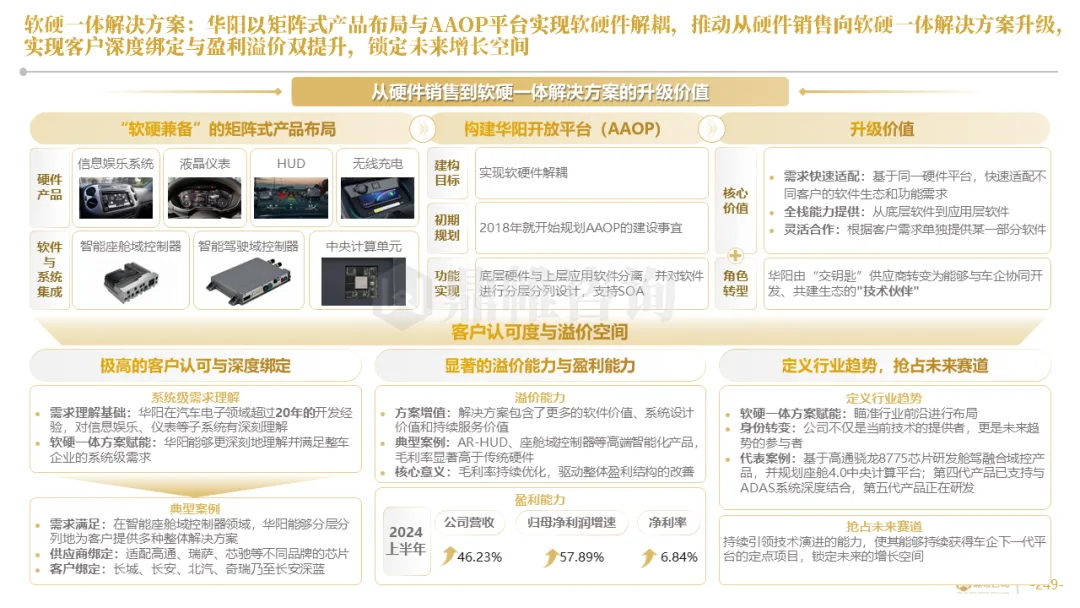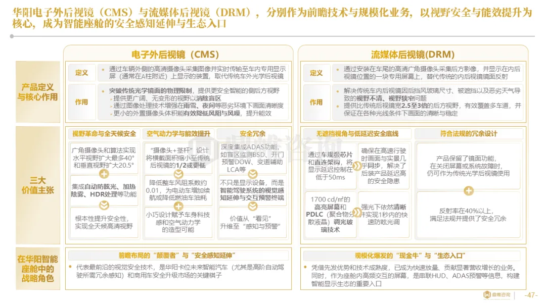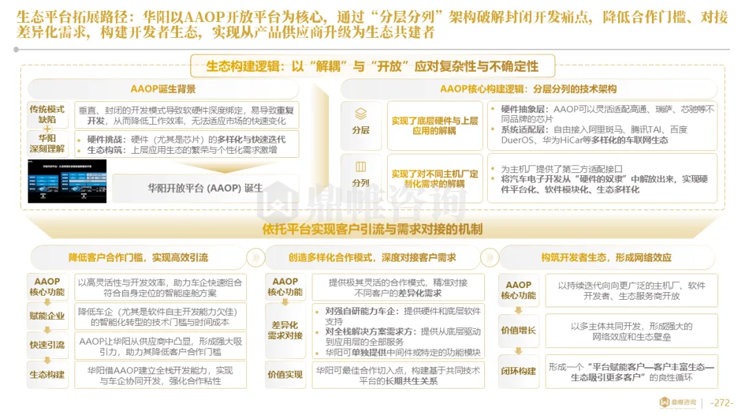 针对明确的能力短板,华阳发起精准的战略并购(如收购江苏中翼),快速获取核心技术与高端客户资源。同时,通过参股、合资等方式前瞻性布局智能驾驶等前沿领域,以轻资产模式卡位未来产业链关键环节,构建生态协同