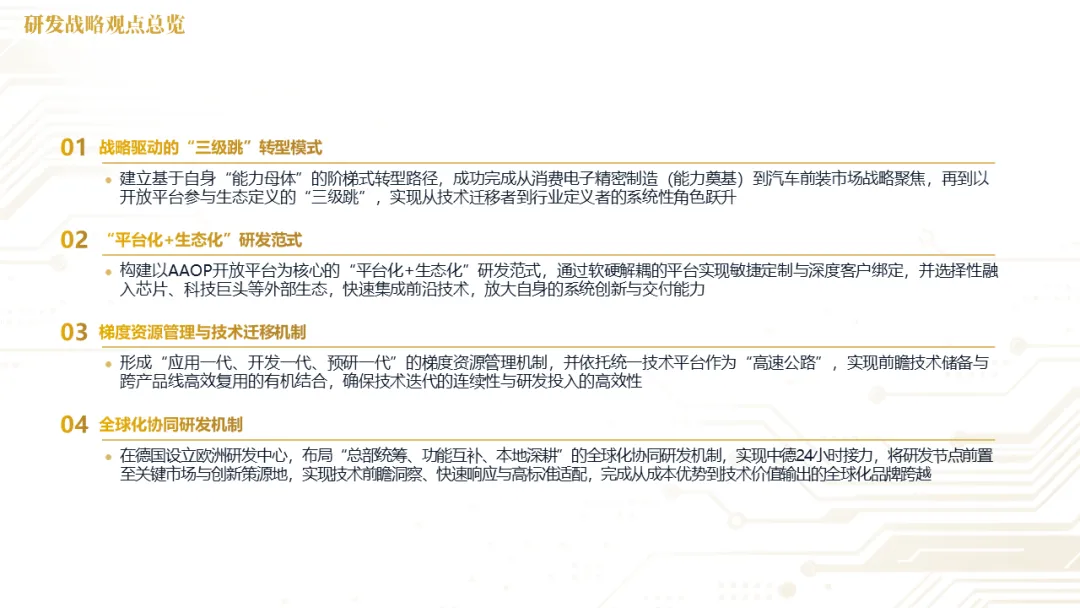 集团对内构建了从精密模具、核心部件到软件算法的垂直整合产业链,实现了对质量、成本与供应链的深度自主控制。对外则打造了AAOP开放平台,通过软硬解耦架构向主机厂及生态伙伴开放能力,完成了从硬件产品供应商向系统解决方案提供商与生态赋能平台的战略跃迁