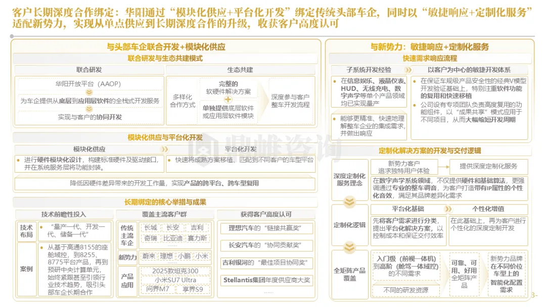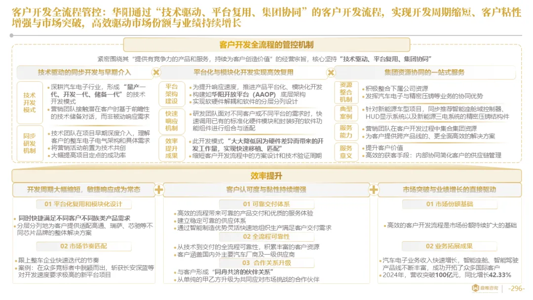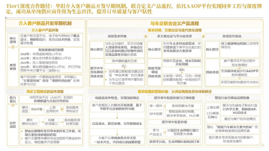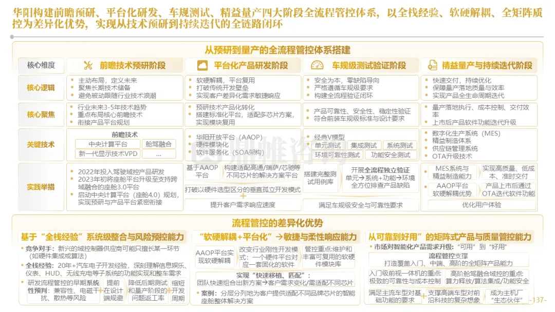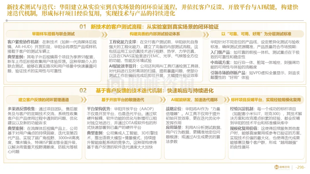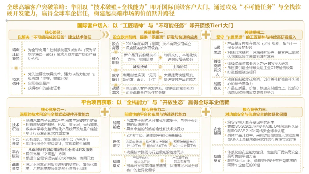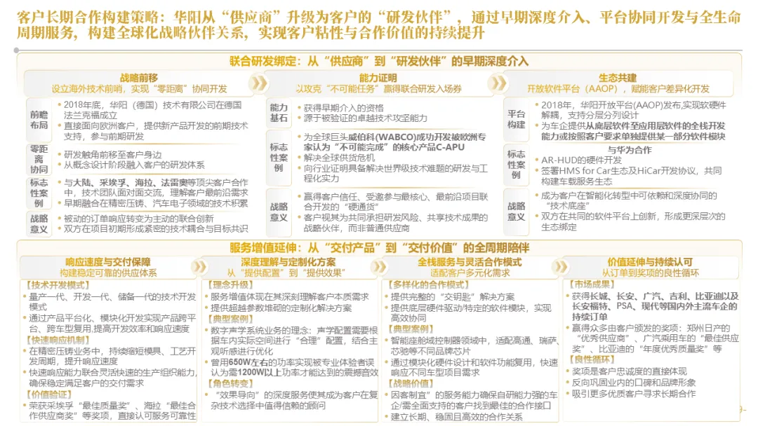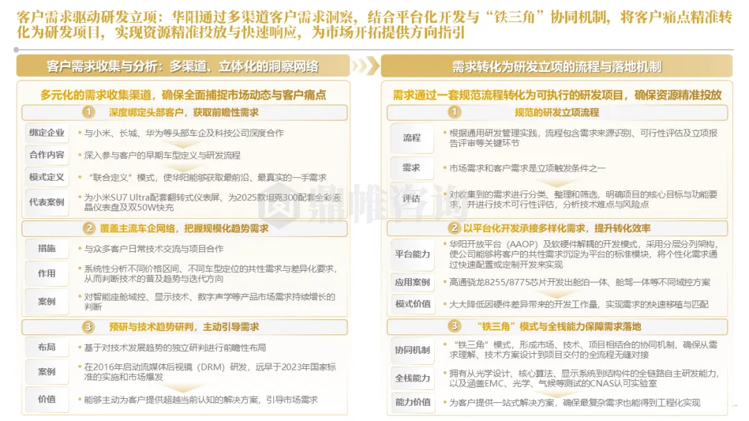 华阳通过设立海外技术前哨、早期介入联合定义及AAOP协同开发等模式,深度嵌入客户研发流程,实现从被动订单响应到主动需求共创的转变。同时,构建了贯穿“需求-研发-生产-市场”的全链路数据闭环,以客户体验与市场反馈数据驱动产品的快速精准迭代