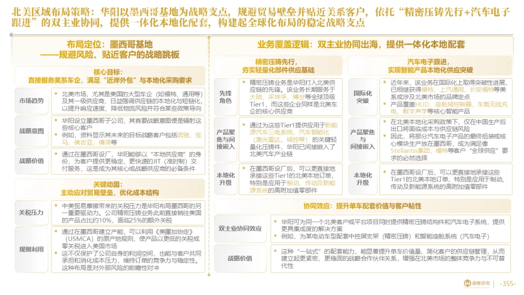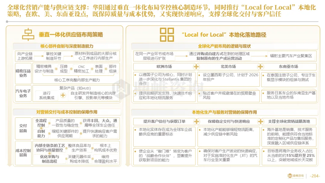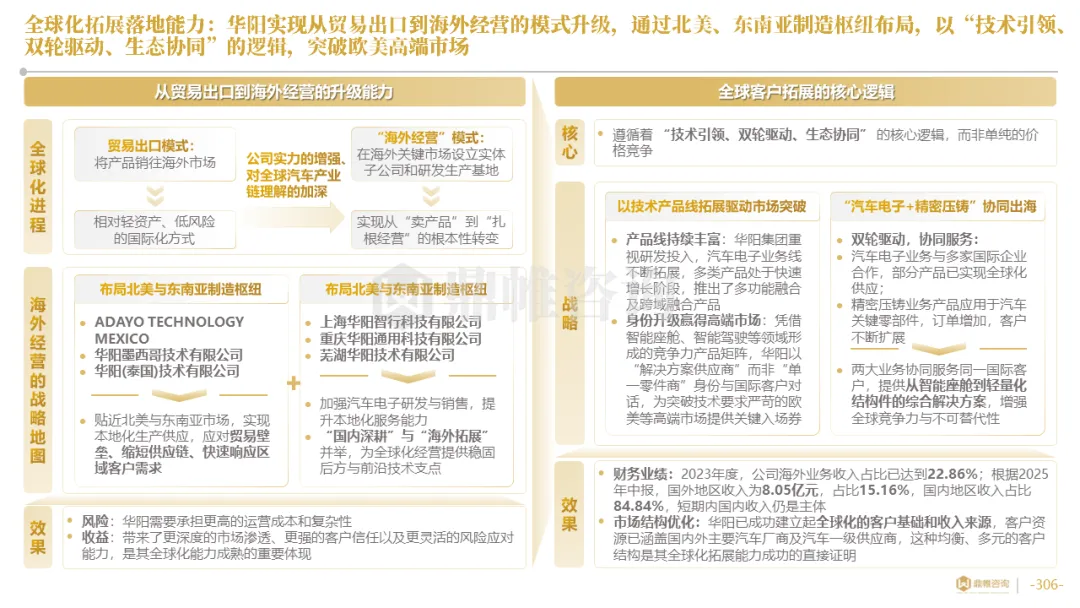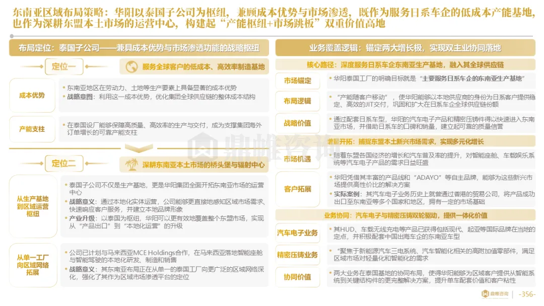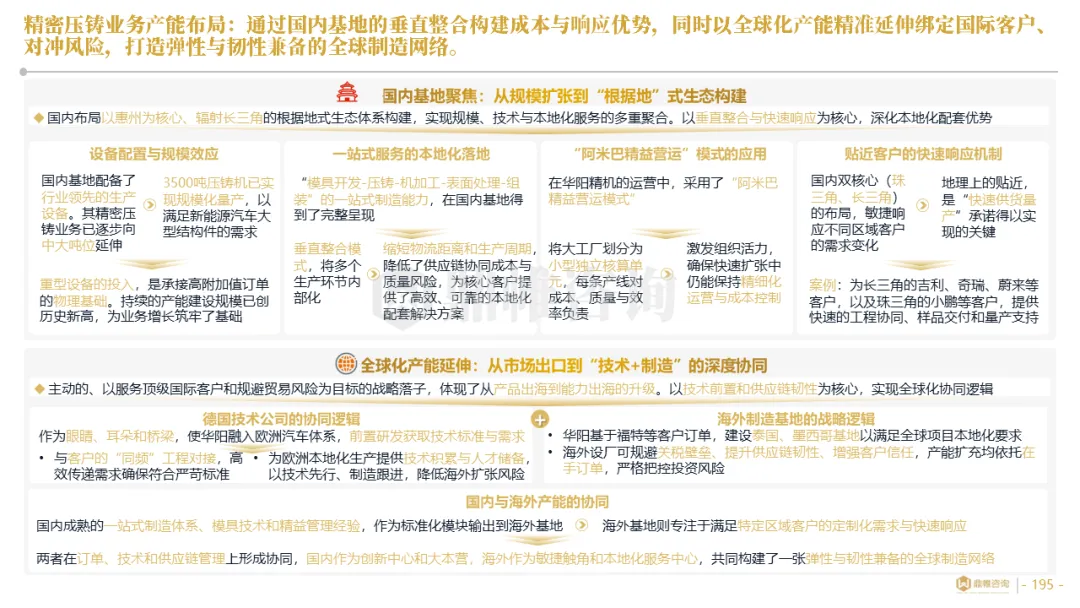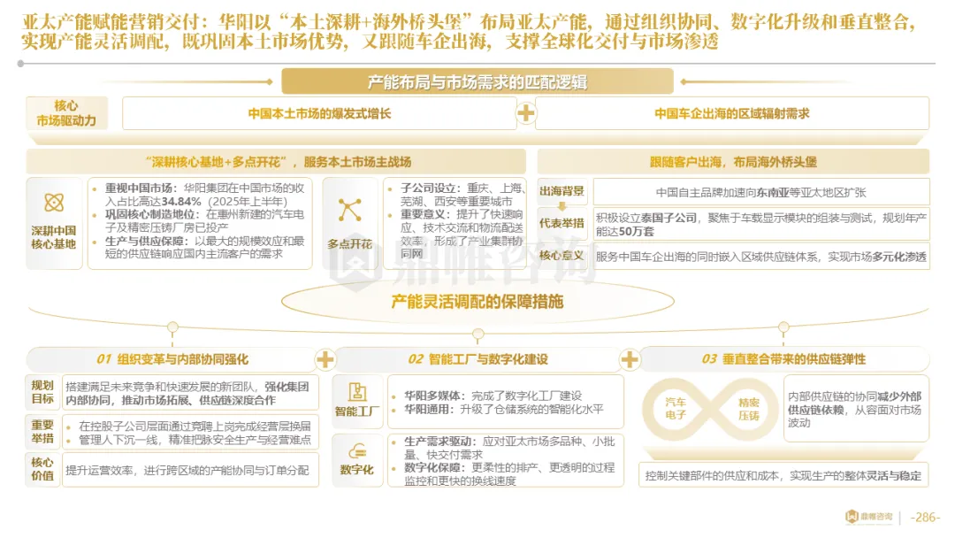 华阳集团构建了以惠州总部为研发中枢,以上海、重庆等国内基地为前沿,以德国技术公司为桥头堡的全球研发布局,并利用时差实现“24小时接力研发”。在德国设立了兼具技术前哨与本地化服务功能的技术公司,在泰国、墨西哥等关键市场,则率先启动了以服务区域客户、规避贸易壁垒为主要目标的生产基地建设,正从“产品出口”向“本地化制造与服务”的战略升级迈进