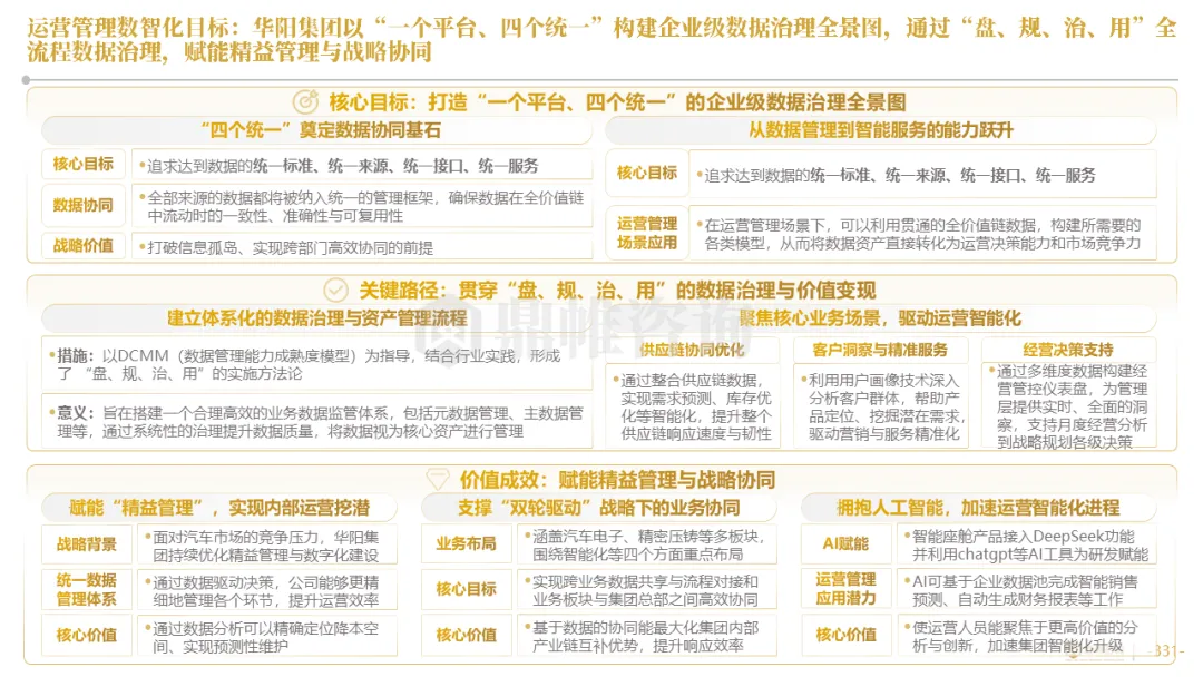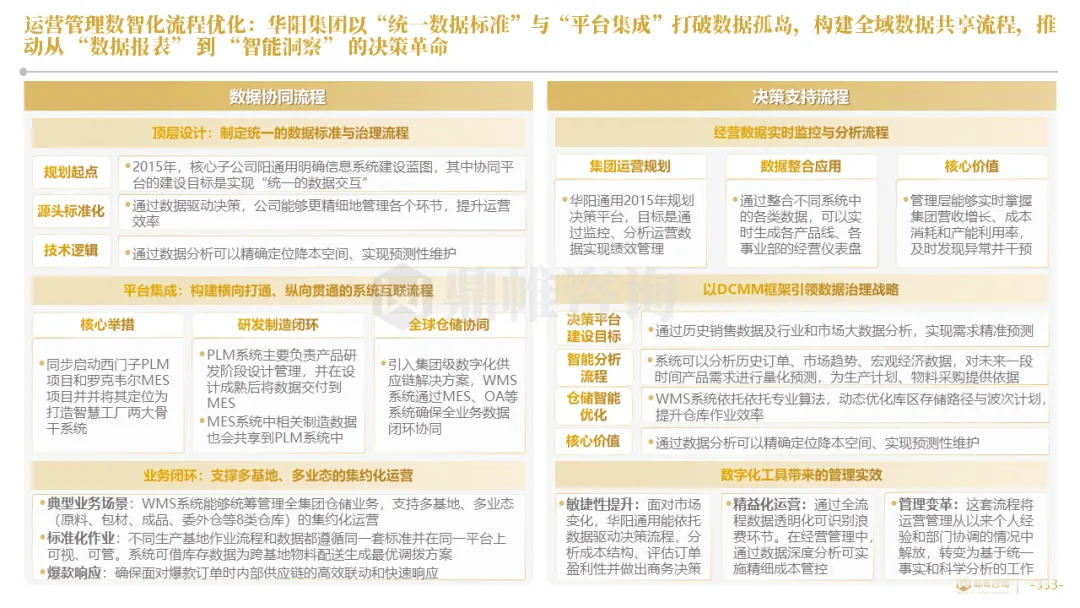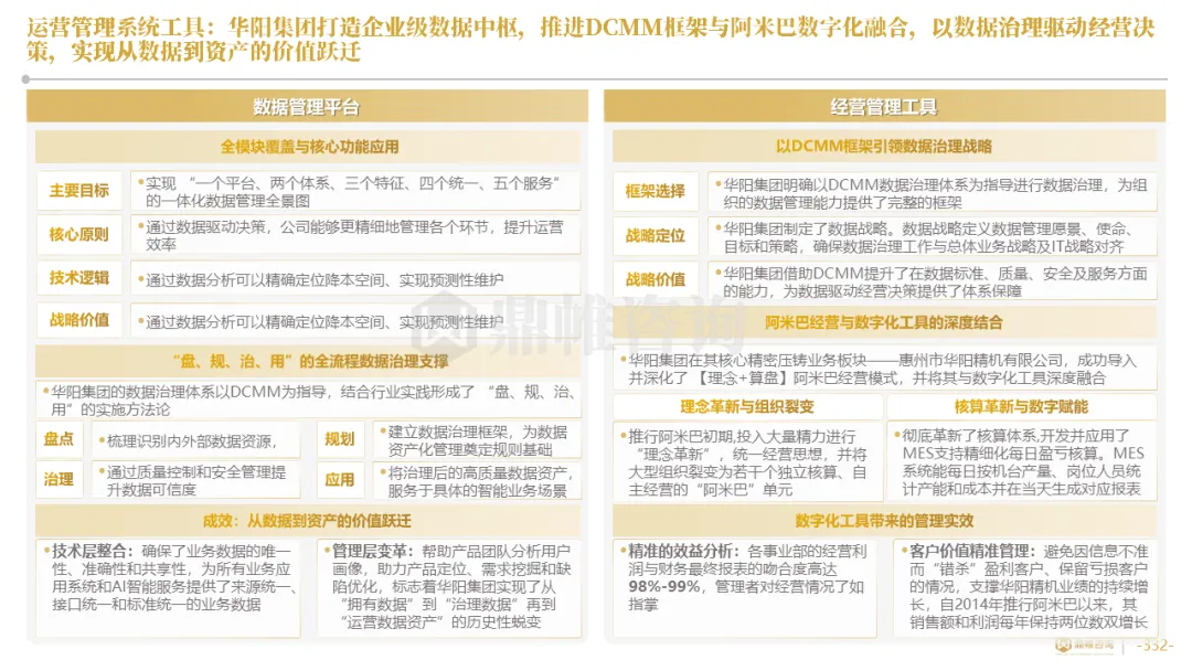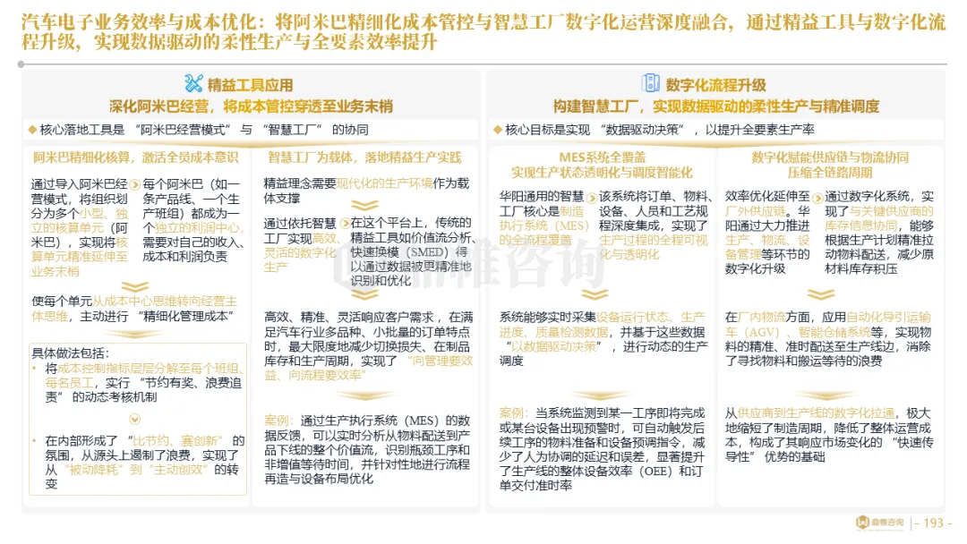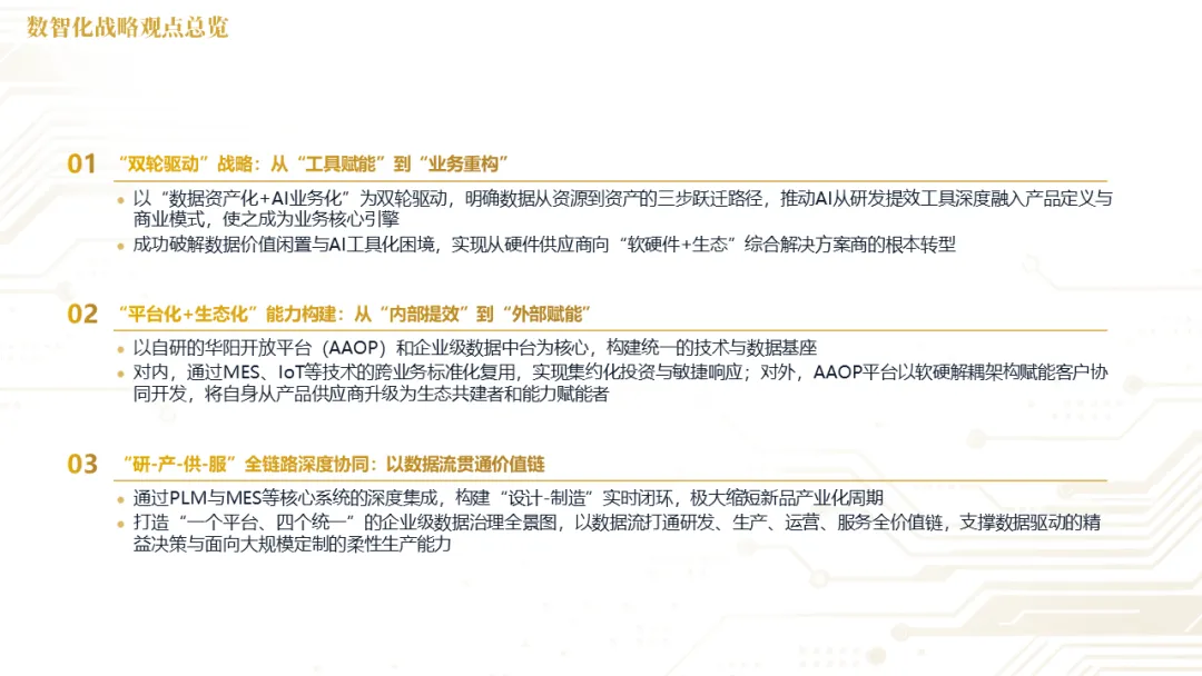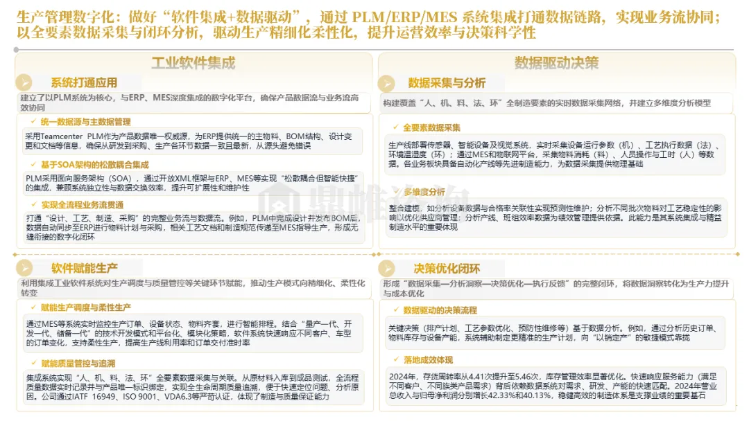 华阳在全集团推行“μ级思想”和阿米巴精益经营,将极致精度与全员改善的文化渗透至各个环节。同时,通过PLM/MES等系统集成、数据中台建设与AI工具应用,通过将精益管理数字化、智能化,实现了从经验驱动到数据智能驱动的运营决策范式变革