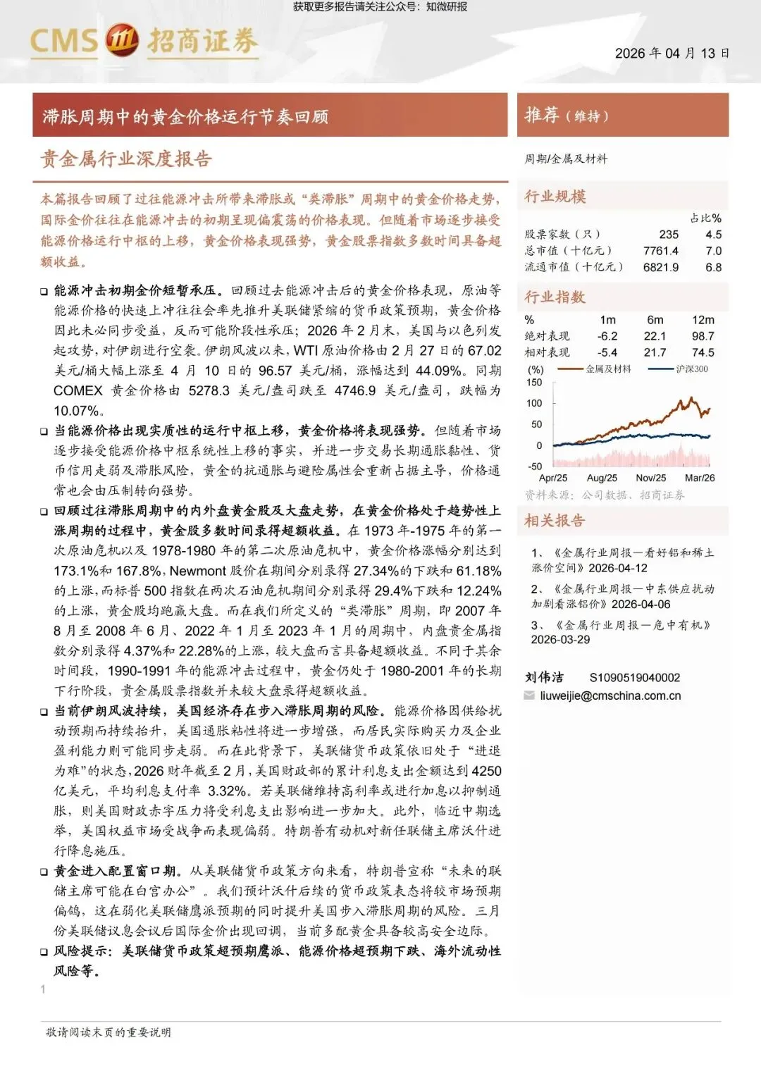 【招商证券】贵金属行业深度报告:滞胀周期中的黄金价格运行节奏回顾