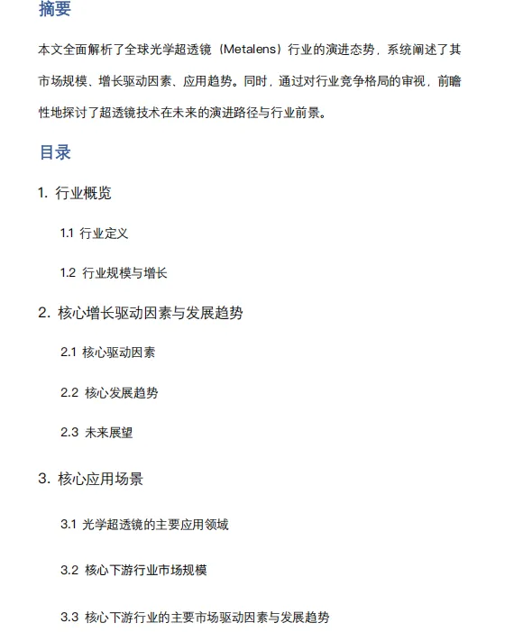 对于光学、电子、半导体、终端品牌而言,2026—2028 年是超透镜黄金窗口期。抓住这波光学革命,就能在下一代成像与传感市场占据主导地位。