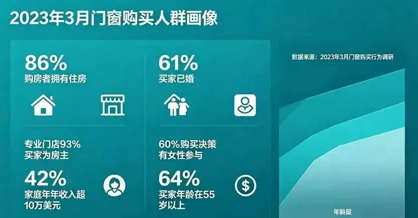 截至2023年3月,门窗购买者的人口特征包括:
