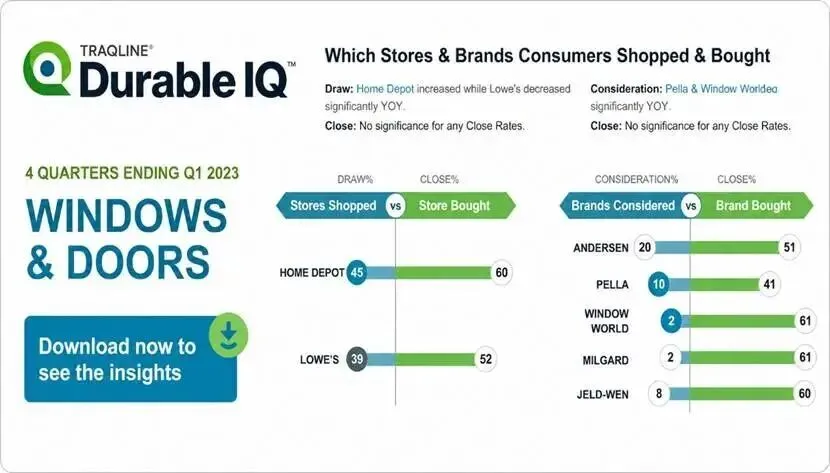Durable IQ 提供了门窗行业的完整视角,从市场份额到购买驱动因素均有覆盖。以下是截至2023年3月的一些其他关键洞察。