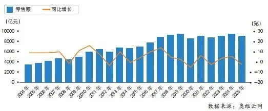图1 2004~2025年中国家电市场零售额规模(全渠道)