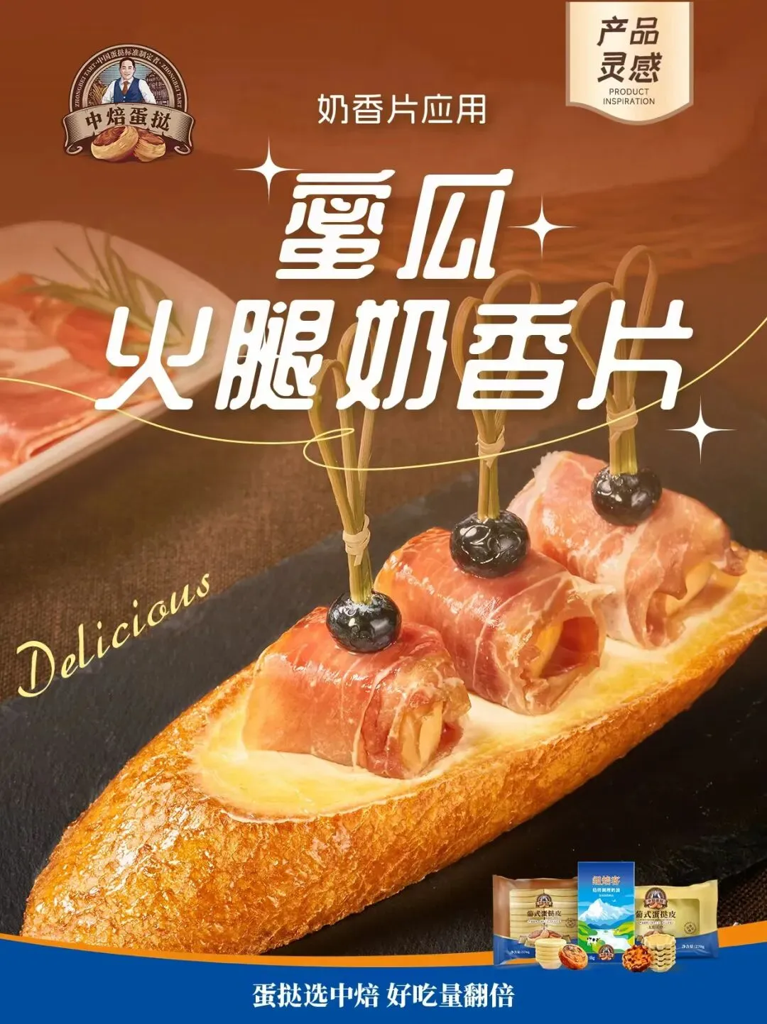 中焙蛋挞创意上新「蜜瓜火腿奶香片」,咸甜风味相融,咀嚼留香,回味十足。