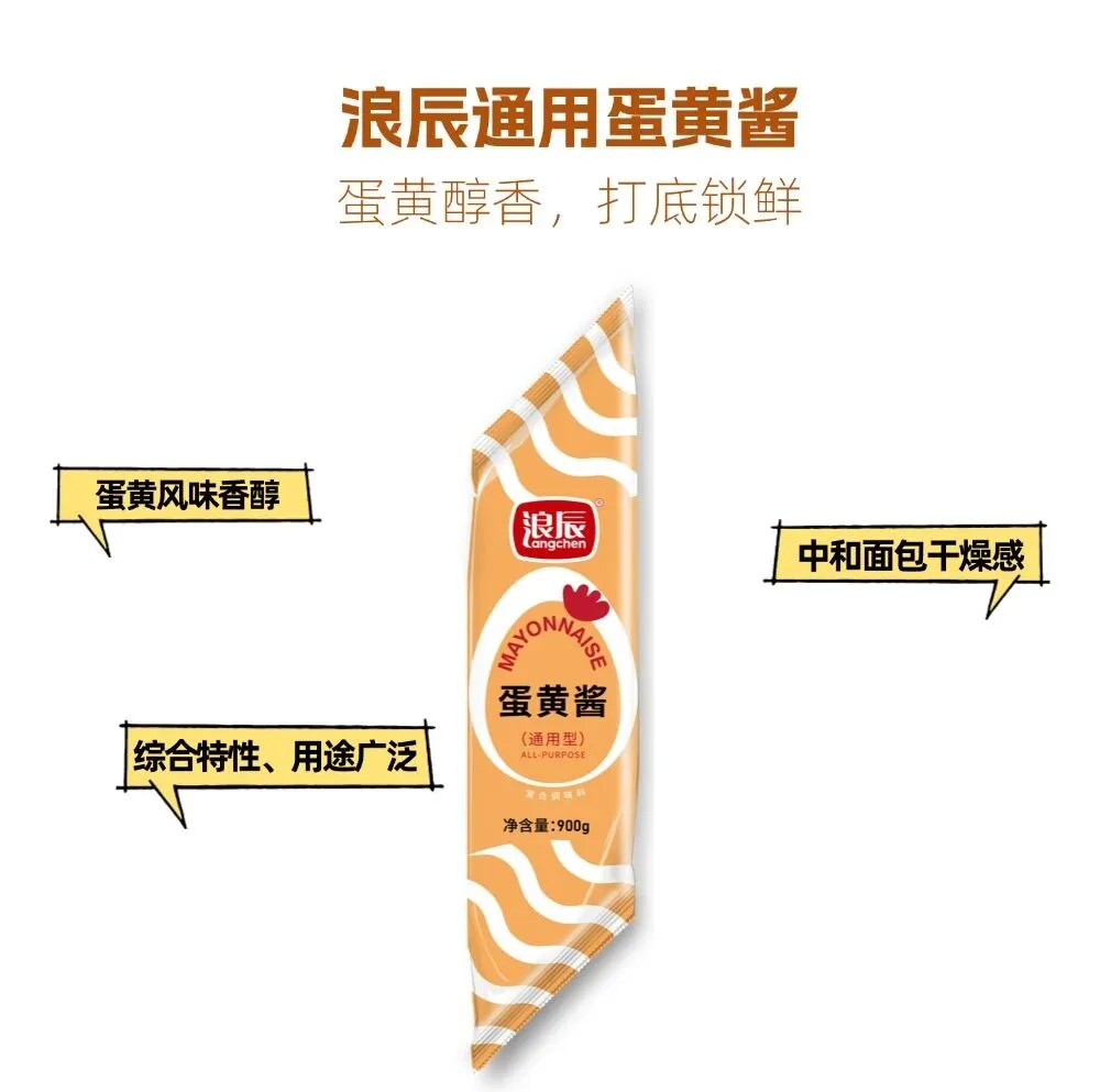 作为风味基底,浪辰通用蛋黄酱自带浓郁醇厚的蛋奶香味,口感细腻顺滑,涂抹在面包上,能均匀渗透在组织缝隙,中和面包的干燥感。同时,蛋黄酱的醇厚口感与鸡肉的鲜嫩搭配互补,既能锁住鸡肉的汁液,避免烤制过程中肉质变柴,又能为整体风味奠定柔和的蛋黄香气基调,让每一口都有温润的风味打底,不突兀、不寡淡。