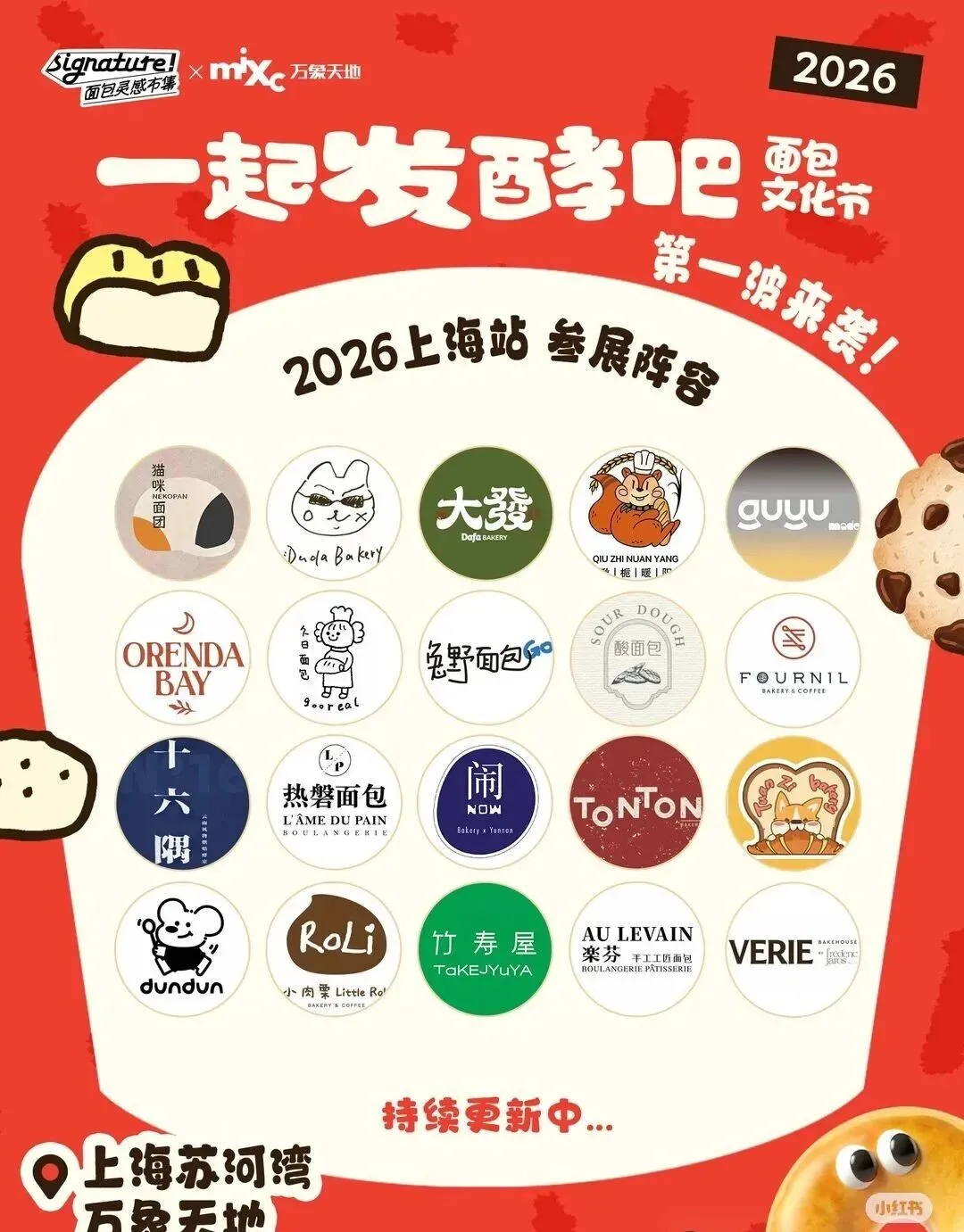 这一次,「一起发酵吧」面包节集结了60多家宝藏面包品牌,还有10多家精酿品牌惊喜加盟,70%的品牌来自全国各地,让你不出上海就可以尝遍各地的面包味道!