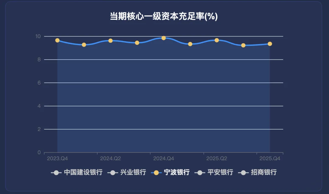2024年核心一级资本充足率为9.84%, 2025年三季度为9.21%, 2025年度为9.34%, 环比 9.21% 增加了 0.13 个百分点,同比 9.84% 减少了 0.5 个百分点. 在没有外部融资且保持总资产16.11%增速的情况, 并大幅提高分红的情况下, 核心以及资本充足率下降的并不多, 也是相当不错的, 目前看也还没有需要继续融资的需求.