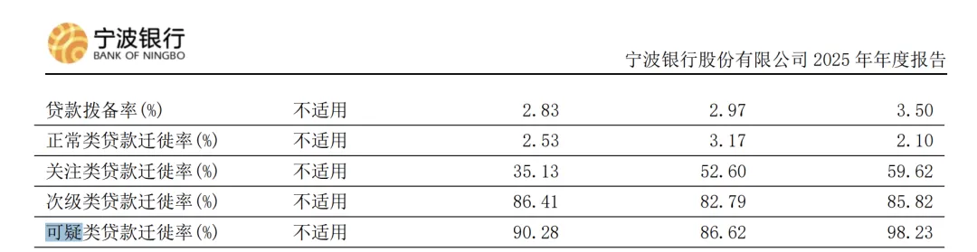因此可以看出宁波银行这份年报在加大不良的认定, 增加了不良的转化, 尤其是损失类占比提高了5bps就可以看出来. 这个就和前面加大信用减值损失对应上了, 利润很不错就加大不良的处理节奏, 资产质量就更加的过硬.