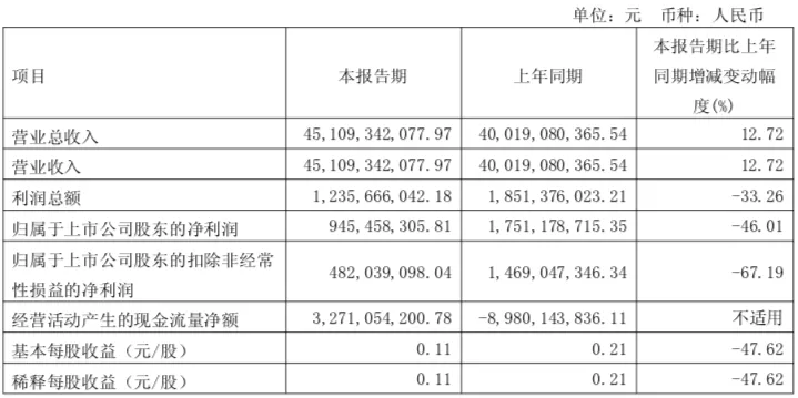 4月24日,长城汽车发布2026年第一季度业绩报告。报告显示,一季度,长城汽车营业总收入为451.09亿元,同比增长12.72%;而归属于上市公司股东的净利润同比下滑46.01%,为9.46亿元;归属于上市公司股东的扣除非经常性损益的净利润则为4.82亿元,同比下滑67.19%。也就是说,长城汽车出现“增收不增利”局面。