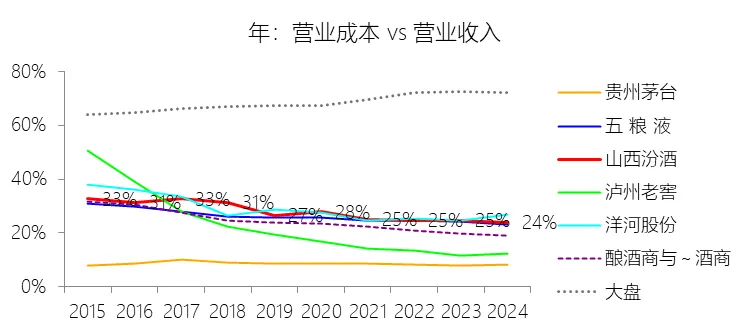 三、营业成本率偏高,产品整体溢价能力仍弱于头部竞争对手