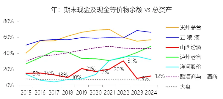 六、货币资金及现金等价物占总资产比例显著高于行业,资金沉淀效率相对较低
