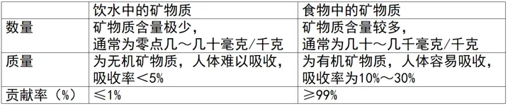 3、饮水与食物中所含矿物质的质量(吸收率)的比较