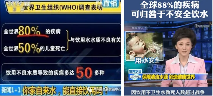 但有一些人,为了他们的私利:或推销产品,或从相关老板那里得到一些好处,公然把安全和健康割裂开,说什么“安全水不一定是健康水”,宣称要喝所谓“健康水”。