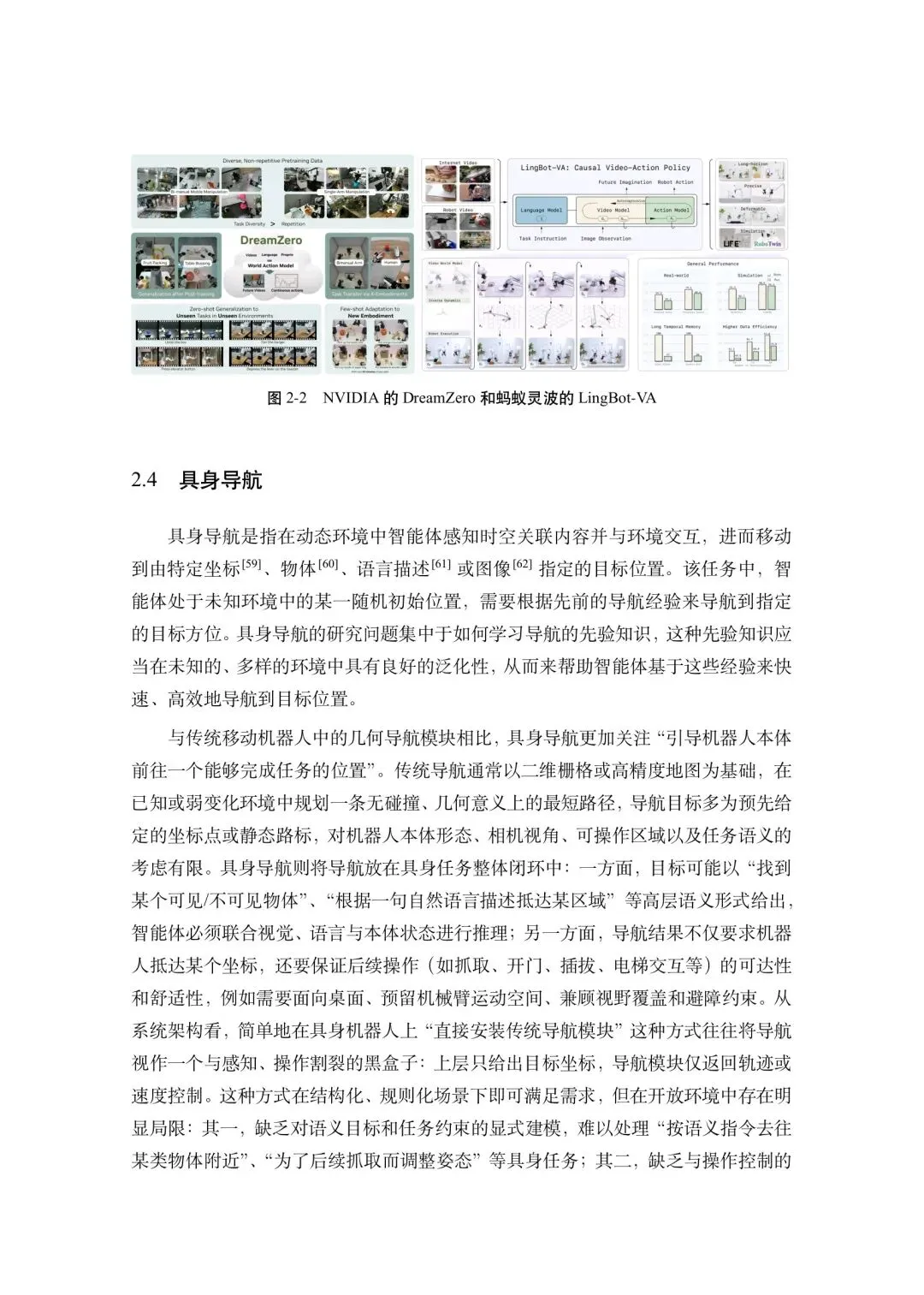 白皮书里提到Nvidia的DreamZero、蚂蚁灵波的LingBot-VA都是这条路线上的代表性工作。我觉得这是对的,也是具身智能真正走进家庭、工厂的必须跨越的坎——机器人必须理解重量、摩擦、弹性、重力这些物理量,不是靠大数据“背答案”,而是靠内在模型“推理”。