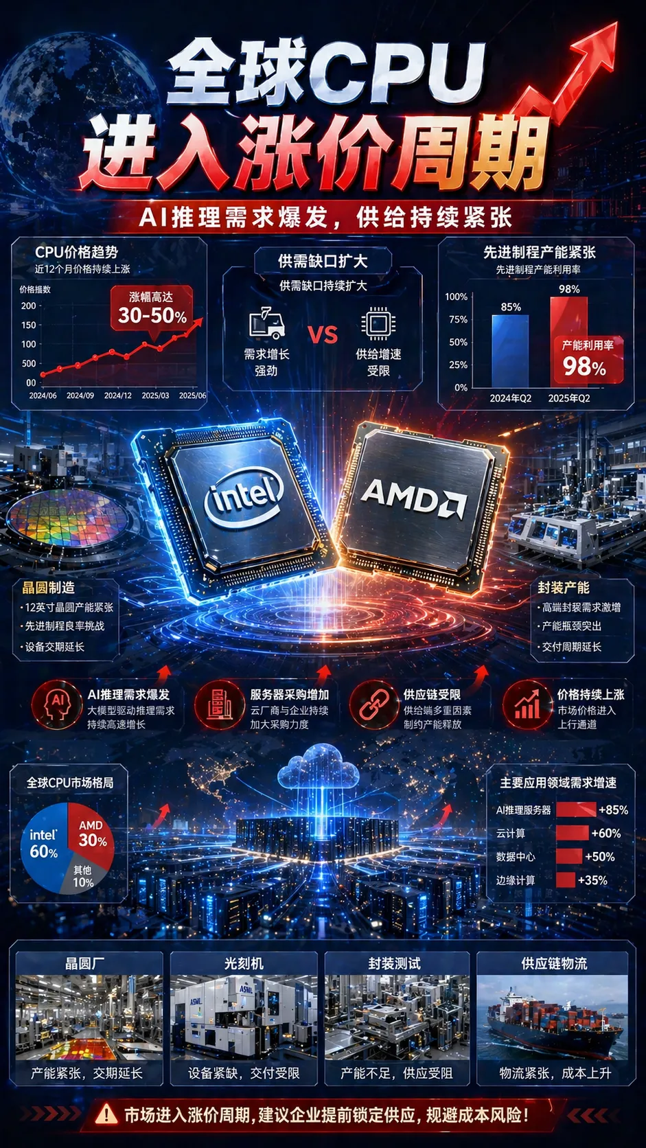 CPU供需紧张,预计至少持续到2027年。
