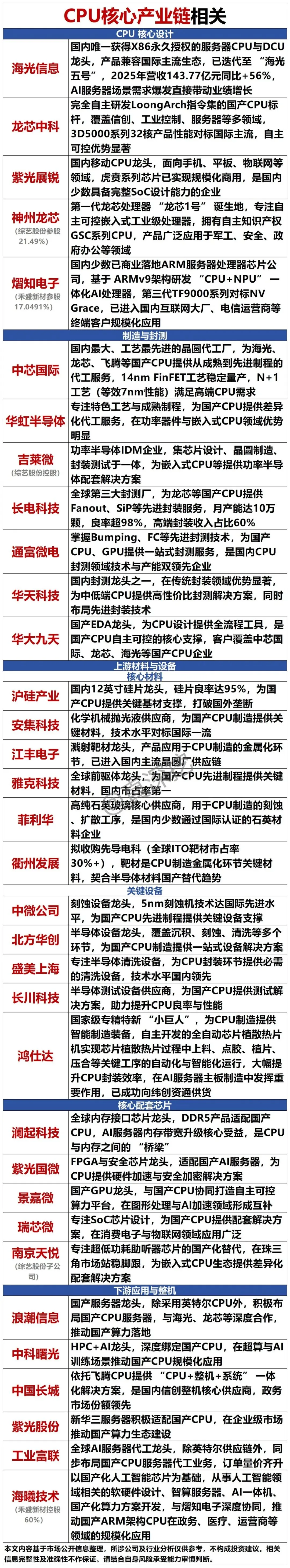国产CPU产业链重点梳理