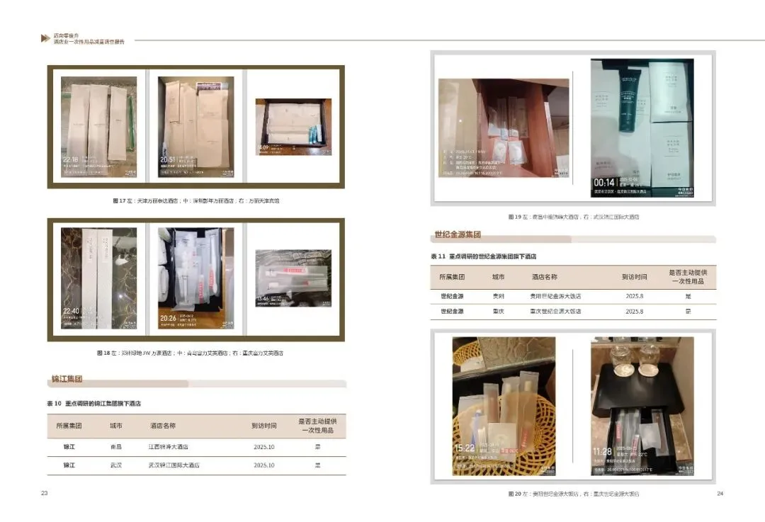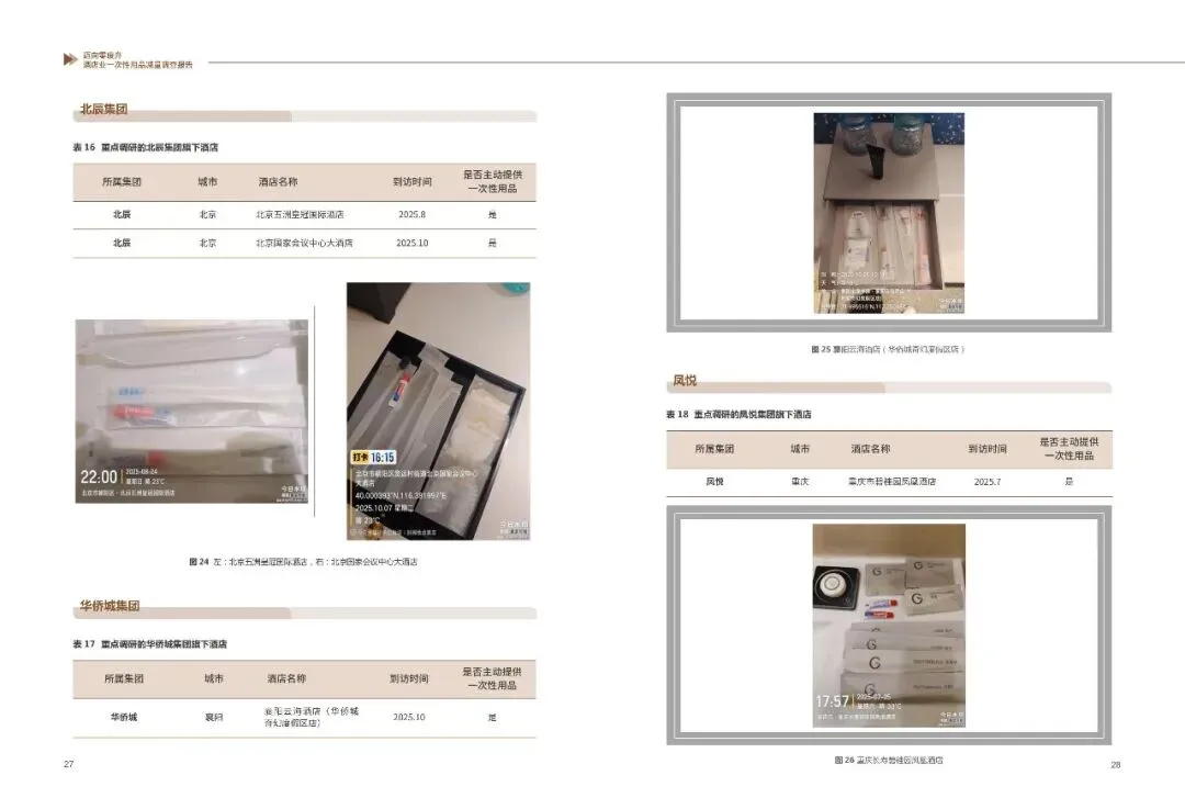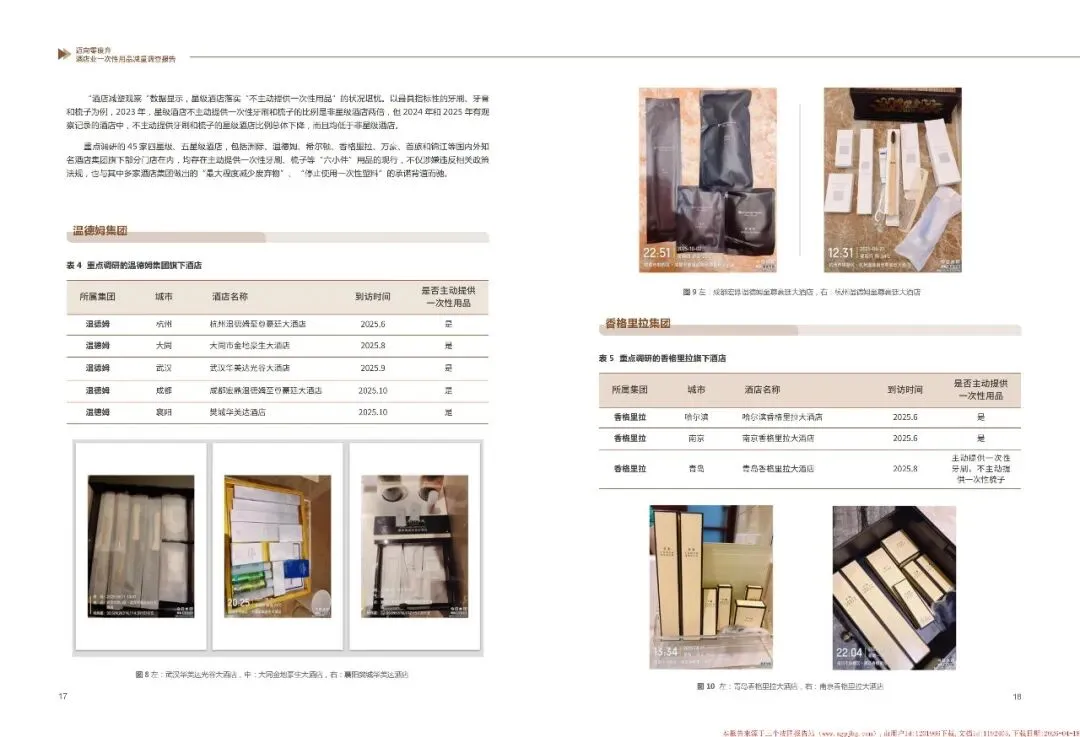 2025年数据较往年不升反降。重庆、长沙、芜湖等地的专项调研同样显示高比例违规现象。尤为突出的是,星级酒店成为“落后生”:2023至2025年,星级酒店不主动提供牙刷和梳子的比例均低于非星级酒店。环保组织重点调研的45家四、五星级酒店(涉及洲际、温德姆、希尔顿、香格里拉、万豪、首旅、锦江等集团)均存在主动提供一次性用品的现象,与相关集团ESG承诺背道而驰。