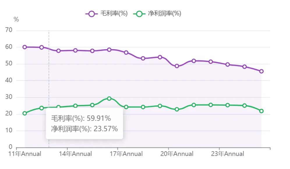 中密控股这个公司的商业模式勉强算可以,管理层也稳健,是个佛龛市场,规模不大,空间有限,但是胜在有护城河,稳定,盘子小,这五年的估值一直就在60亿到80亿之间来回,本次2025年年报和季报貌似“爆了雷”,重点说下我的看法。1、2025年的营收和利润其实没有太大惊吓,和之前判断的差不多。但是公司强调市场竞争异常激烈,毛利率持续下滑,掉了2.76%,并且给2026年的营收增长计划只有3.19%,利润增长7.38%。和市场预测的10%甚至15%以上的增速相差有点大。2、2026一季报有点吓人,毛利率掉了7.89%,毛利掉了这么多,营收还跌了-3%,把市场吓坏了。再说判断:资本市场的情绪总是一惊一乍的,两次财报披露都是大跌。但是这两次财报的这个情况,确实会让大家担心在这么卷的环境下(主要和境外公司竞争),公司会不会毛利率长期下滑,增长会不会大幅变缓,如果成立,公司的估值中枢跌到15倍以内(60亿)。我的结论:毛利率季度性大幅波动受公司合同种类与节奏影响较大,不值得作为参考,但是毛利率持续下行的压力还是不小。如果谨慎期间可以将公司估值买点调低5%,即32以下或者66亿以下作为低估买入点。分析图说明:下面的图都是我自己写程序做的,还在调试,图中有些文字可能不对(比如写成了白酒、茅台这些),可以忽略,数据是对的。先看年度毛利率,从疫情之后一路向下,确实有点可怕。再看看公司的ROE和ROIC,下图可以看出来,净利率逐年下降,当时公司的ROE和ROIC不仅没有降低,反而微升。ROE和ROIC基本同步,说明公司基本没有怎么用债务杠杆,从公司历年不高的资产负债率也能印证。那么是让公司在利率下降的情况下,ROE/ROIC反而不断走高。杜邦分析里的拆解,权益乘数(负债率)和净利率下降,唯一可解释的就是资产周转率上升了。资产周转率 = 营业收入 / 平均总资产,也就是衡量的一块钱资产能挣多少钱。下图可以看出来,公司的营收/资产比逐年上升,也就回答了刚才为啥净利率掉了,投资回报反而高了的问题。说明公司的资产运营效率在不断提升,是个好事情。