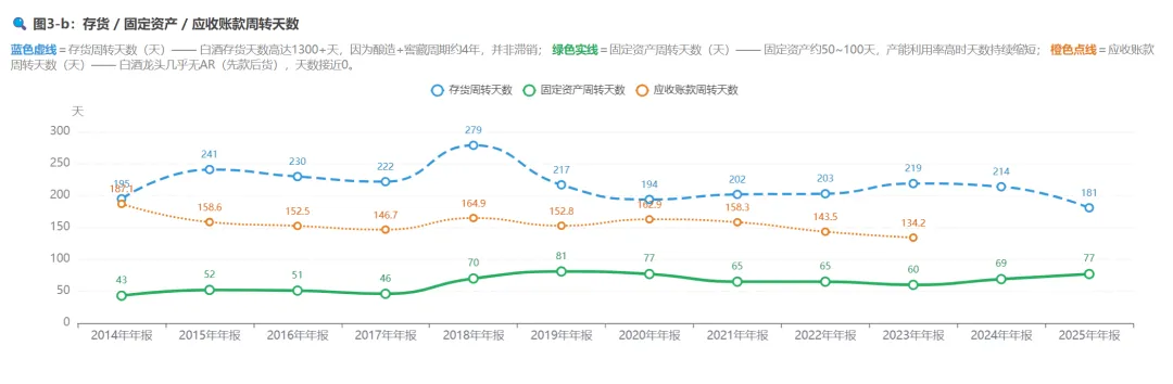 再往下拆解就是公司的存货、固定资产和营收账款的运转速度了,这里能看出来,除了固定资产在变高,存货和应收账款都在往下走,这是运营效率提高的根源。