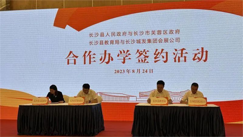 ▲8月24日,育英会展小学合作办学签约活动在长沙国际会展新城举行。