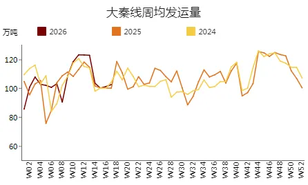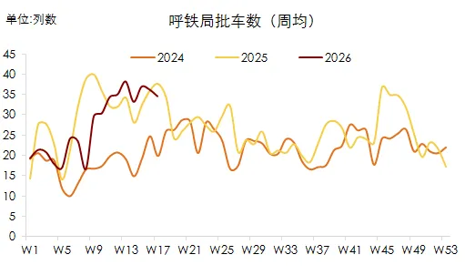 截至4月24日,大秦线一周内日均发运量102.46万吨,周环比增加2.4万吨;呼铁局一周内日均批车数35列,周环比减少3列。
