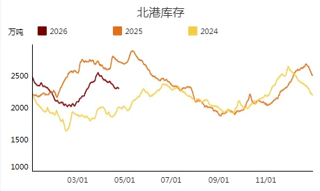 本周北方港口市场稳中偏强运行。当前电厂日耗偏低,采购以长协为主,对市场煤仅维持零星刚需及招标,整体需求有限,对价格支撑不强。然而,港口限制点菜单叠加铁路运量受限,贸易商发运受阻,优质可流通资源偏紧,上游挺价情绪较强,市场成交僵持。部分市场参与者表示,大秦线检修结束后,库存虽有累积可能,但在场地限制下累库斜率将较缓和、增量有限。同时,进口煤价格高企,且随着气温回升、电厂日耗上升,后续补库需求或逐步释放,多数上游预期较强,短期价格易涨难跌。后期需关注终端补库节奏及港口累库斜率。
